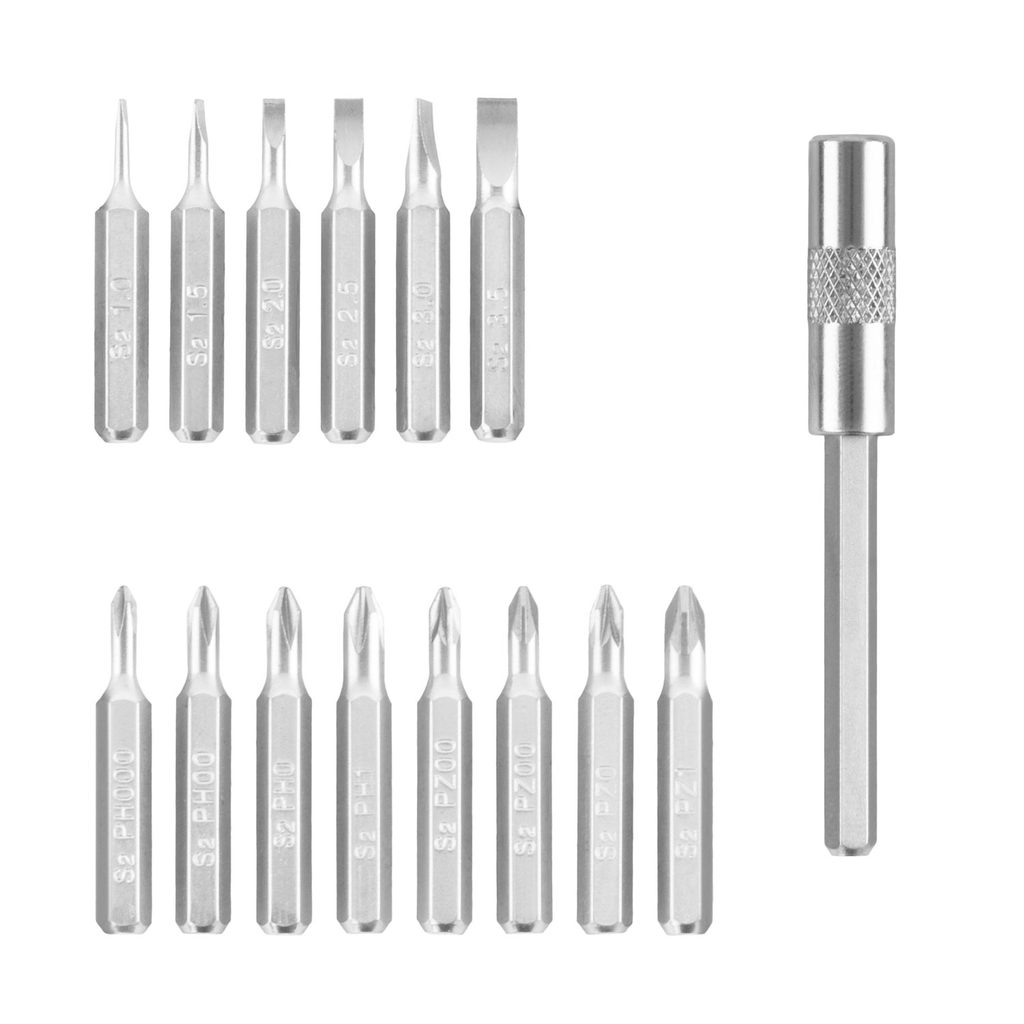 26ks 28mm bitů: Phillips: PH000, PH00, PH0, PH1