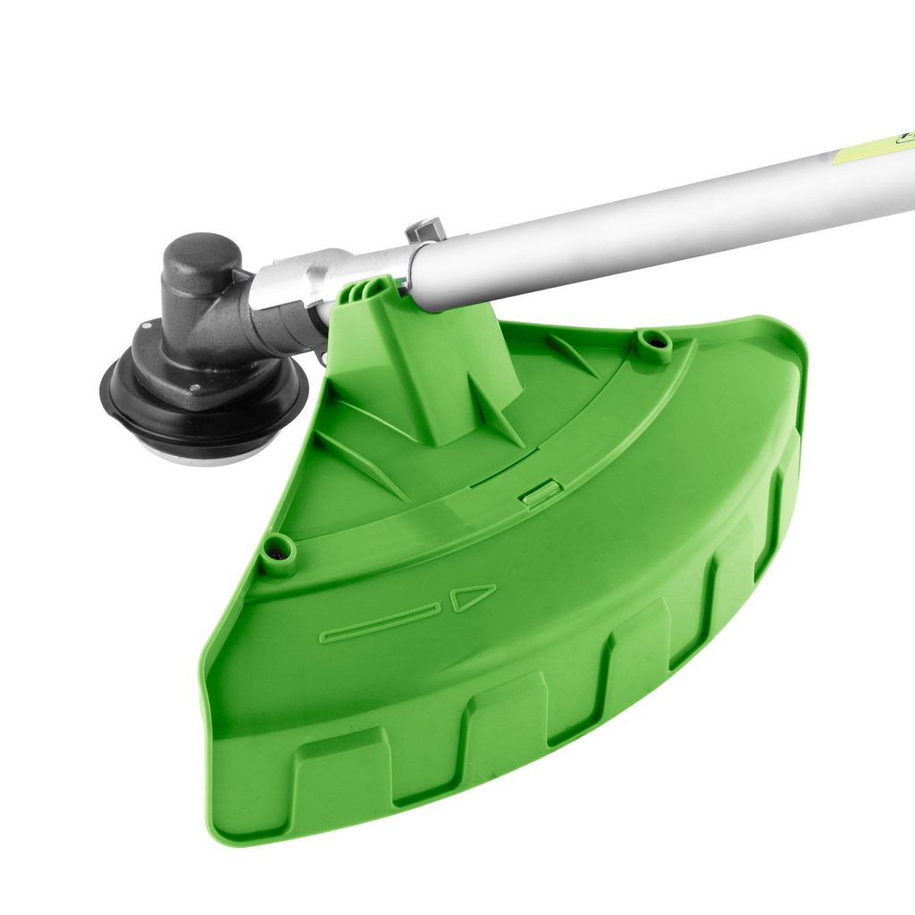 Univerzální výbava: součástí balení je strunová hlava se strunou o průměru 2,4 mm pro běžné sečení a pilový kotouč pro silnější porost, nálety a houževnatější vegetaci.
