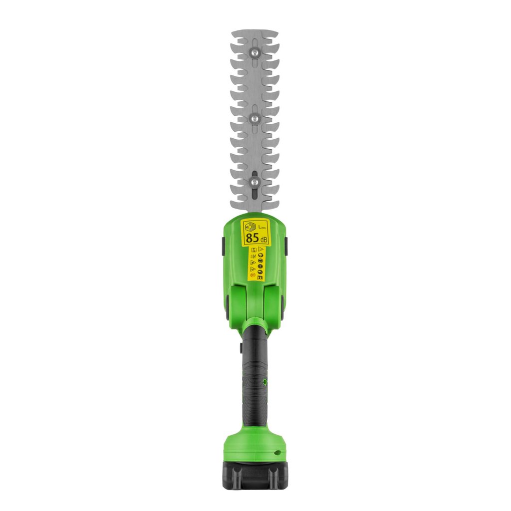 Otočná ergonomická rukojeť: Rukojeť lze natočit do několika poloh, což výrazně usnadňuje práci v různých úhlech — například při střihu svislých ploch, horizontálních okrajů trávníku nebo tvarování kulovitých keřů.
