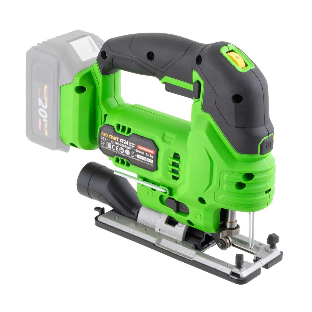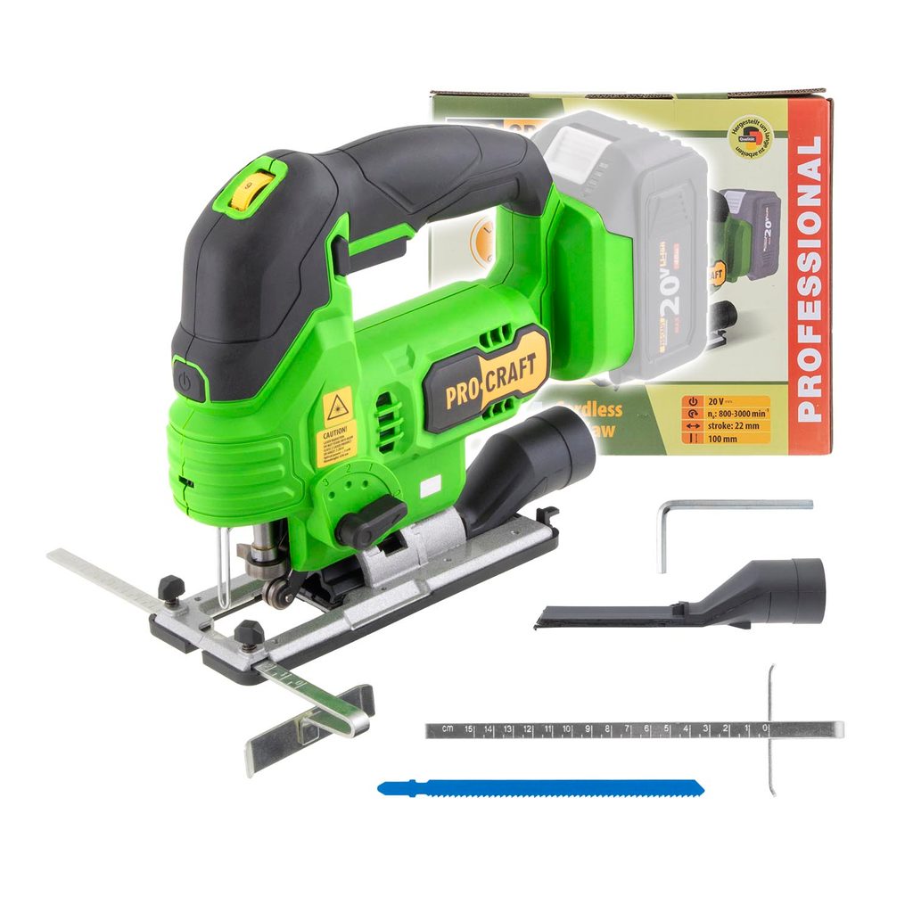 Aku přímočará pila Procraft ST24 je určena k řezání dřevěných, ocelových a litinových materiálů. kvalitní silný motor o otáčkách 3000 zaručí dlouhodobý a bezporuchový chod. Rychloupínání umožňuje snadnou a rychlou výměnu pilových listů. 3.stupňové nastavení předkmitu usnadní řezání dřeva. Vybaven laserem, který usnadňuje kontrolu vedení řezu a ofukem zajistí čistotu řezaného materiálu. Možnost nastavení úhlu řezání v rozsahu ±45°. Součástí dodávky je adaptér na vysavač, paralelní doraz. Váha 1.8Kg Balení karton.