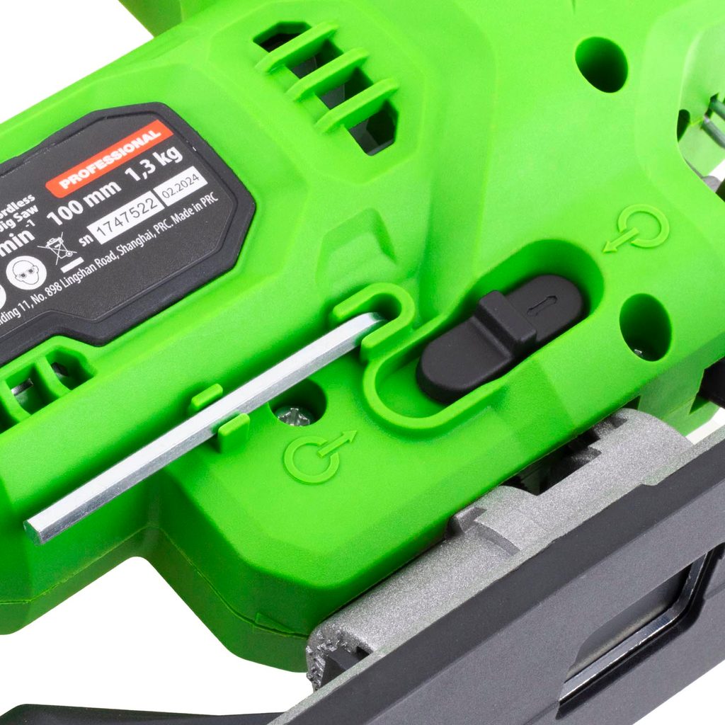 Regulace otáček (800–3000 min⁻¹): Umožňuje přizpůsobit rychlost řezání typu materiálu – od jemného řezu v laminátu až po rychlé dělení dřeva.