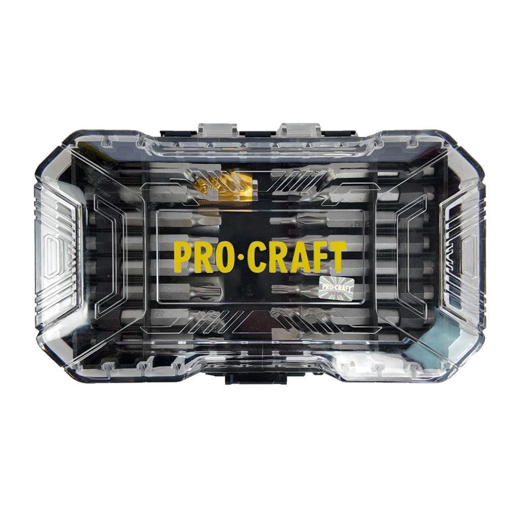 Sada bitů BS-37 v balení: 37 kvalitních bitů pro šroubování všech běžných typů spojů. 37dílná sada bitů Procraft BS-37 16 ks 25mm bitů: Phillips: PH1, PH2x6, PH, Ploche: SL6, Torx: T20x2, T25x2, Imbus: 3mm, 4mm, 5mm 16 ks 50mm bitů: Phillips: PH1, PH2x3, PH3, Pozi: PZ1, PZ2x2, Torx: T15, T20, T25, Square: SQ1, SQ2, SQ3, Imbus: H4, H5.