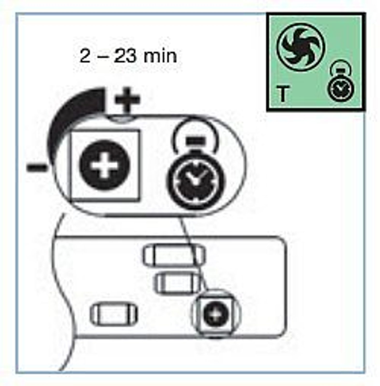 Varianta T - s časovým doběhem v rozsahu 2 - 23 min. Nastavení se provádí pomocí trimru na ovládací desce pod krycí mřížkou.