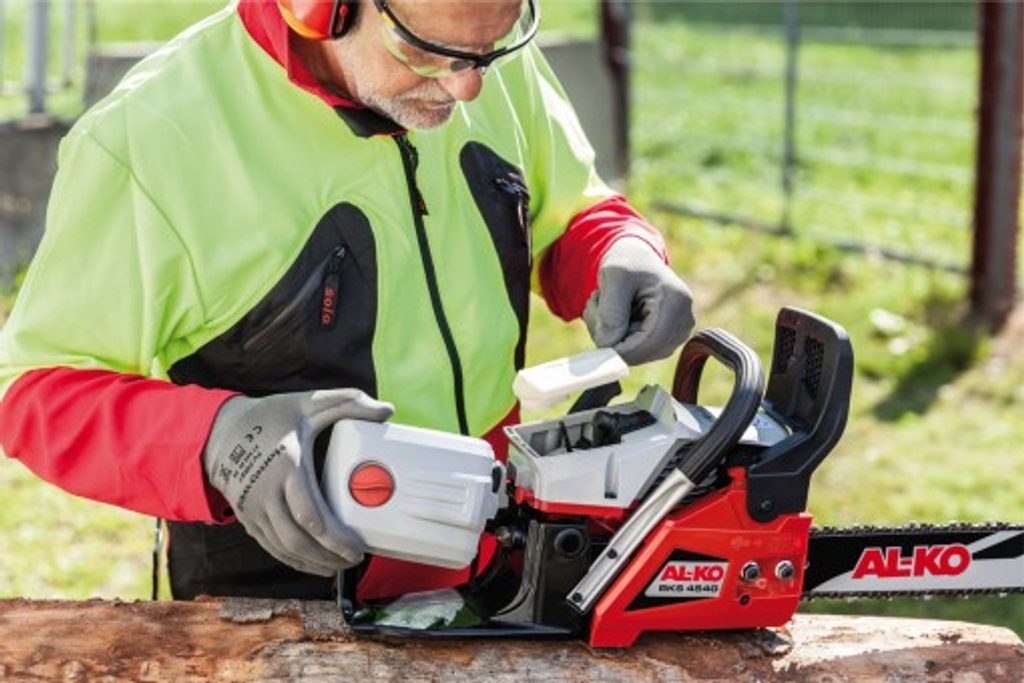 U benzinových strojů, které nejsou u nás připravovány k provozu je nutné doplnit olejové náplně a benzin u výrobků vybavených benzinovým motorem. U řetězových pil je nutné nasadit řetězovou lištu a napnout řetěz. Vše je důkladně popsáno v návodu k použití, který si předem důkladně prostudujte!