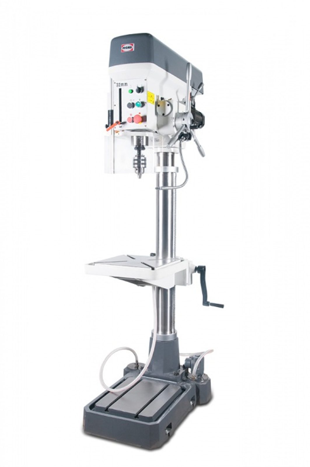 Základní výbavou průmyslové vrtačky PROMA BY-3220PC/400 je výkonný šestipólový motor. Průmyslová vrtačka jsou určena pro připevnění na stojan či podstavec tak, aby pracovní výška vrtačky byla ideální. Základová deska vrtačky je vybavena otvory pro pevné ukotvení k podkladu. Pracovní výška stolu se nastavují pomocí kliky. Některé typy průmyslových vrtaček jsou dále vybaveny nožním spínačem, reverzací otáček a strojním posuvem.