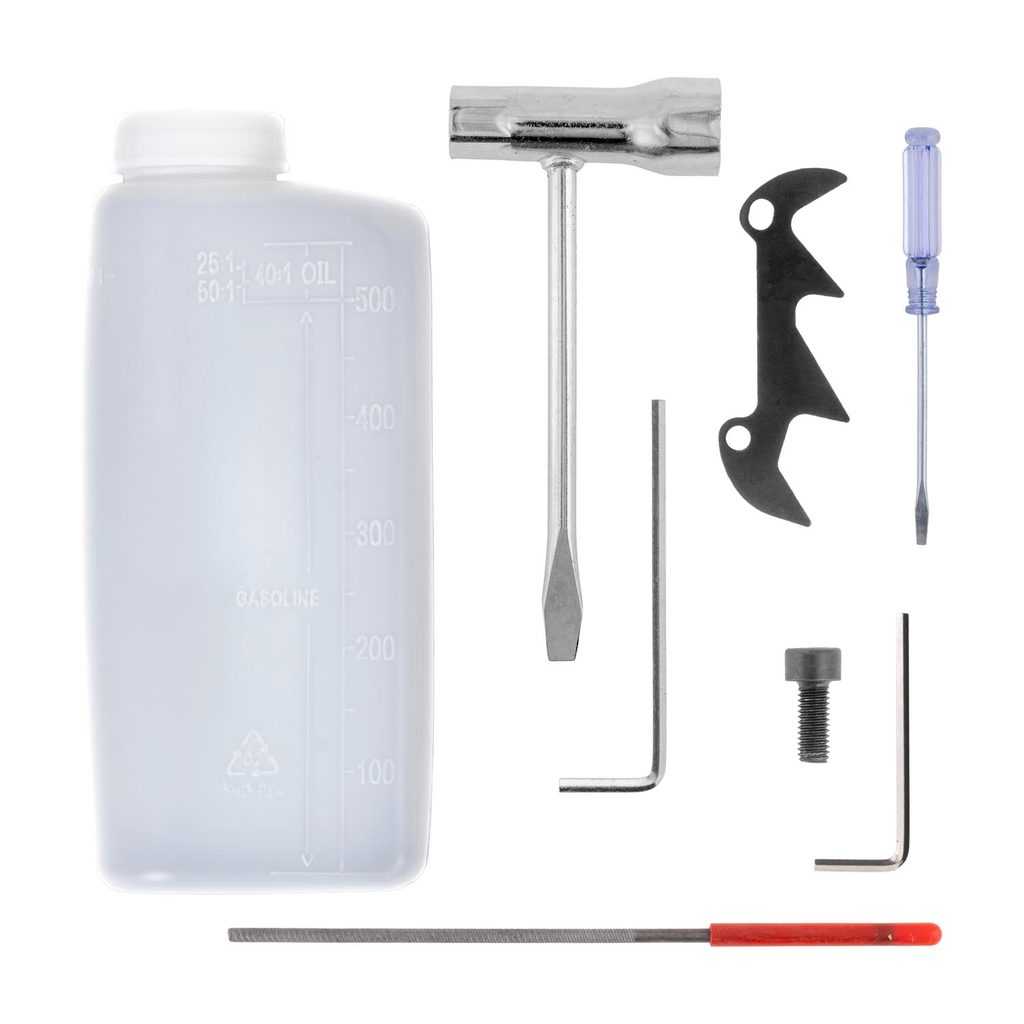 U benzinových strojů, které nejsou u nás připravovány k provozu je nutné doplnit olejové náplně a benzin u výrobků vybavených benzinovým motorem. U řetězových pil je nutné nasadit řetězovou lištu a napnout řetěz. Vše je důkladně popsáno v návodu k použití, který si předem důkladně prostudujte!