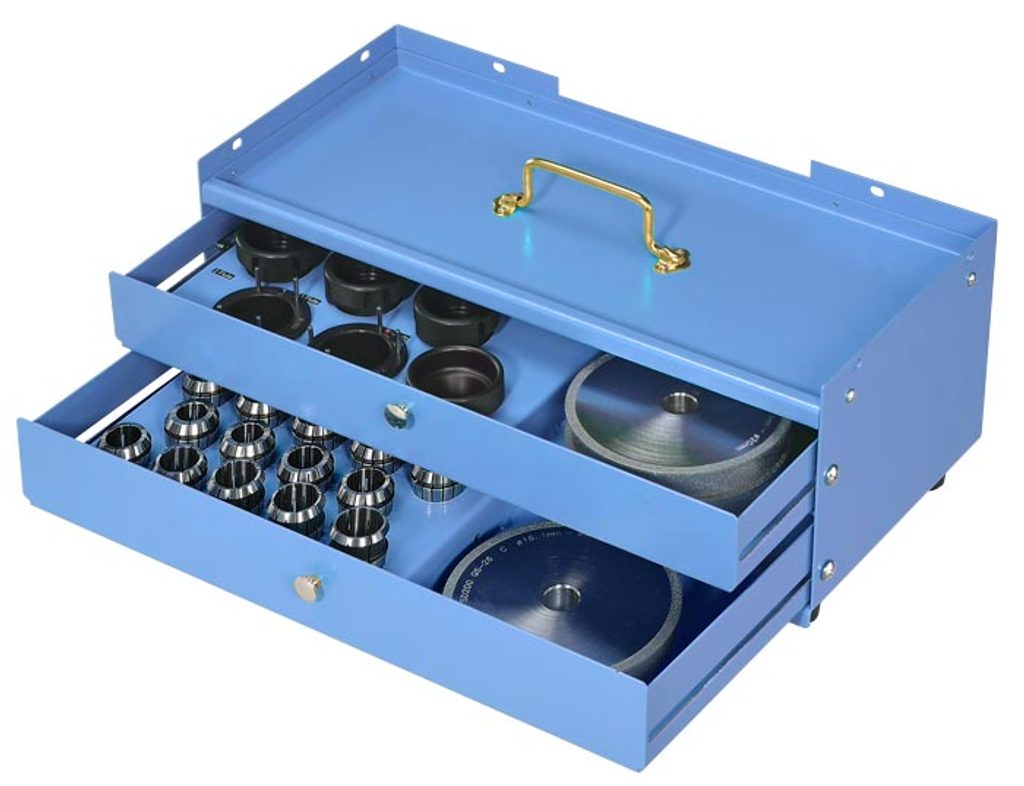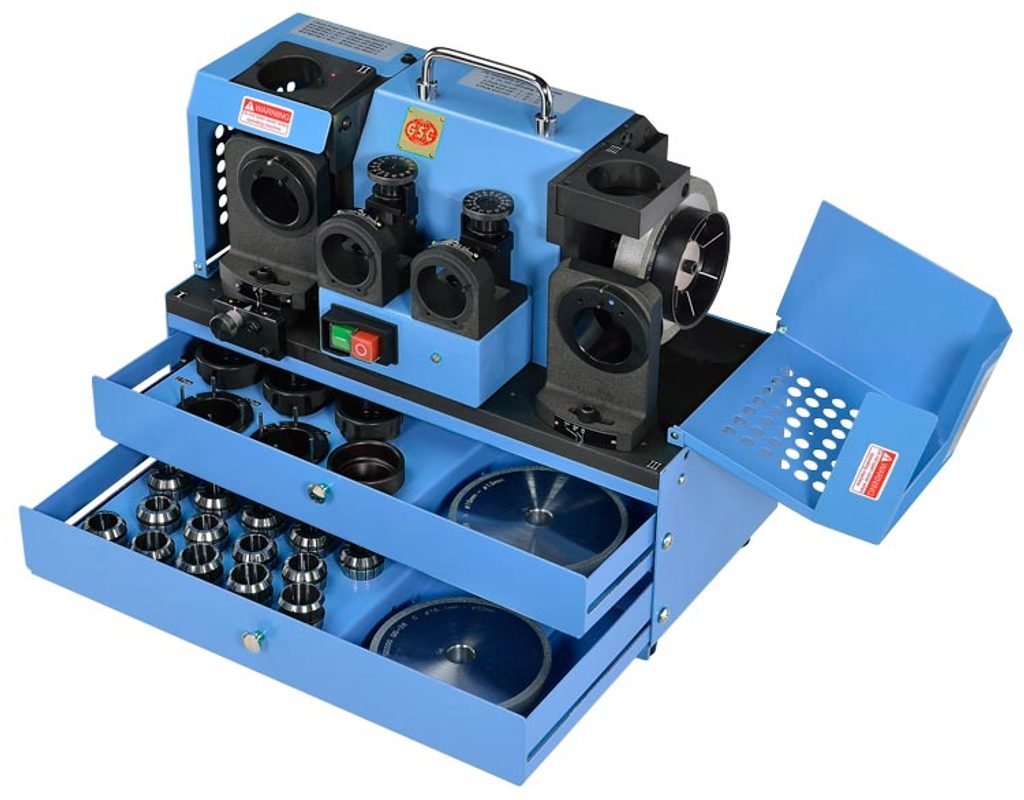 Bruska pro 2, 3 a 4-břité frézy ø 12 – 26 mm. Nastavitelný úhel broušení 0 - 12°.