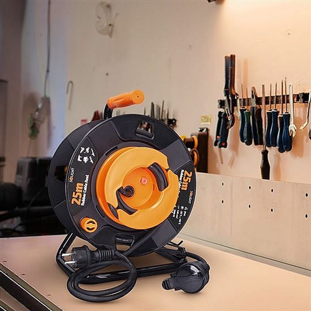 Ergonomické madlo usnadňuje přenášení a rychlé navinutí kabelu. Ideální pomocník pro profesionální stavební práce, údržbu nebo náročné hobby projekty.