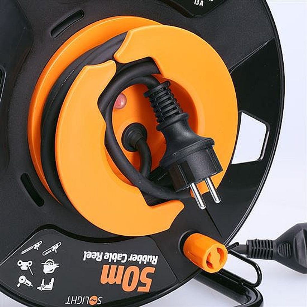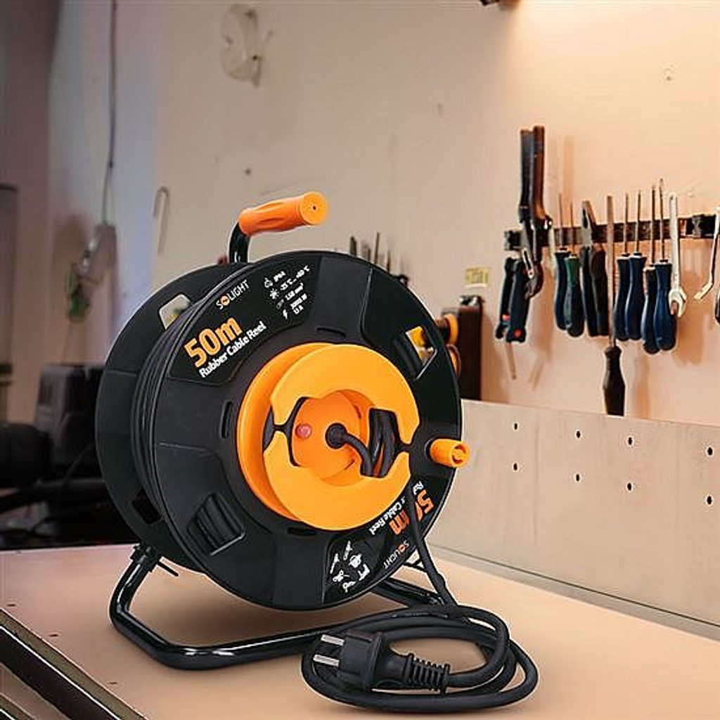 Robustní venkovní prodlužovací přívod na bubnu pro náročné použití: prodlužovací kabel na navíjecím bubnu s délkou 50 metrů a jednou zásuvkou je ideální pro použití venku, na stavbách nebo v dílnách.