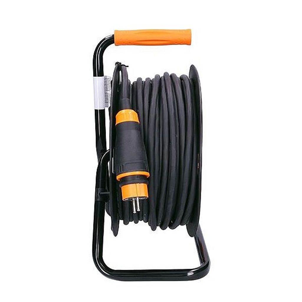 Ergonomické madlo usnadňuje přenášení a rychlé navinutí kabelu. Ideální pomocník pro profesionální stavební práce, údržbu nebo náročné hobby projekty.