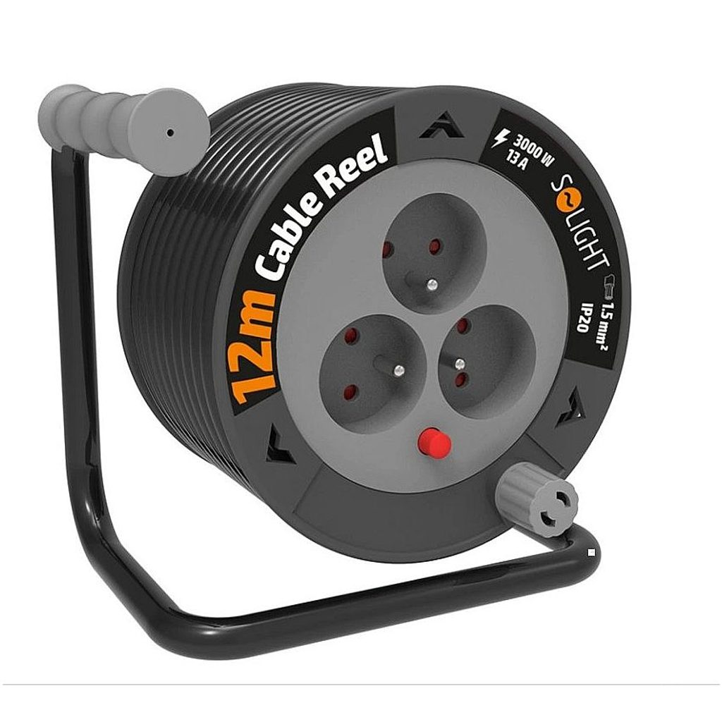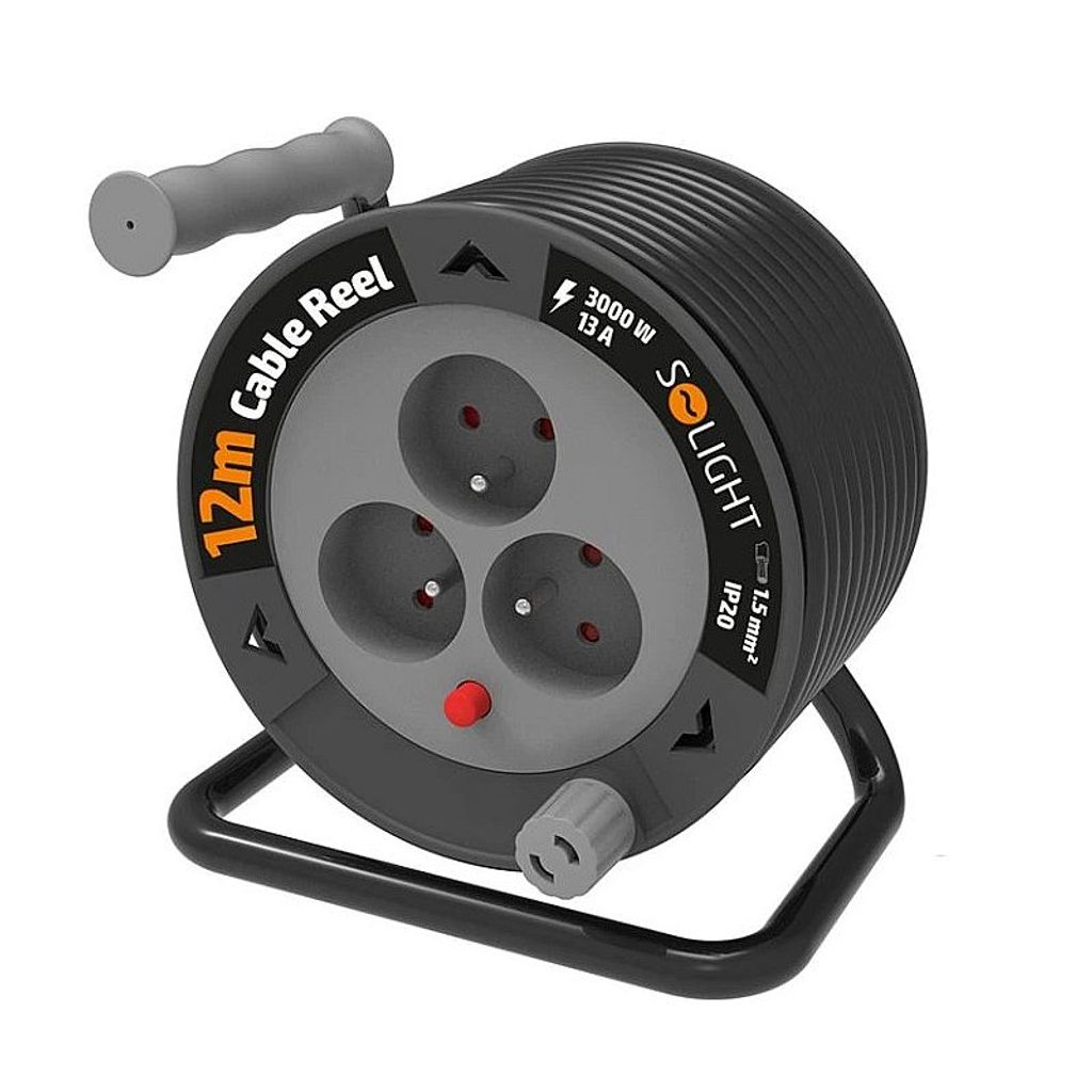 Prodlužovací přívod 12 metrů s navíjecím bubnem a velkým výkonem nabízí plnou využitelnost i ve větších místnostech, na zahradě nebo na stavbě.