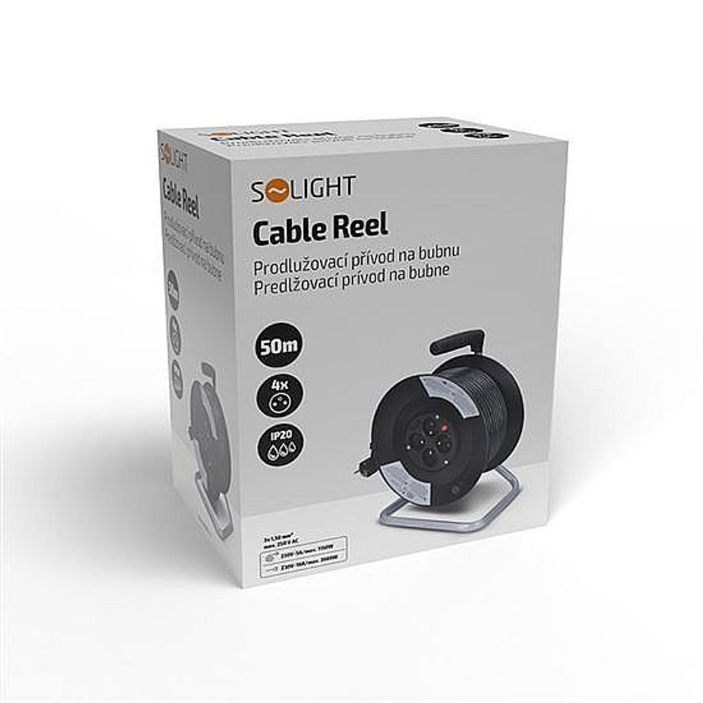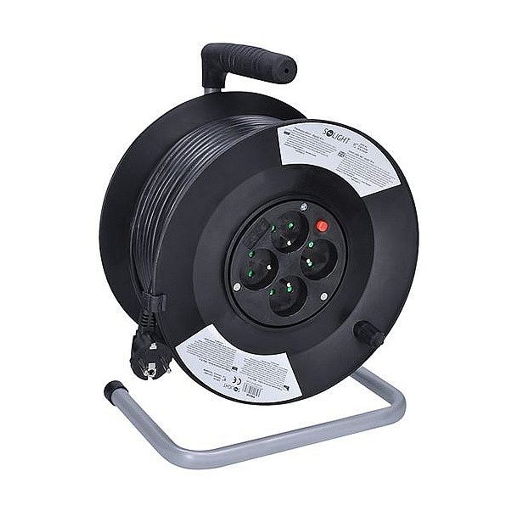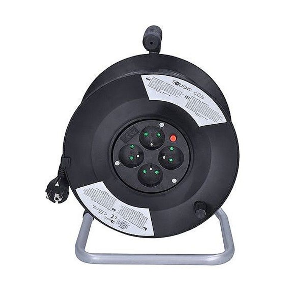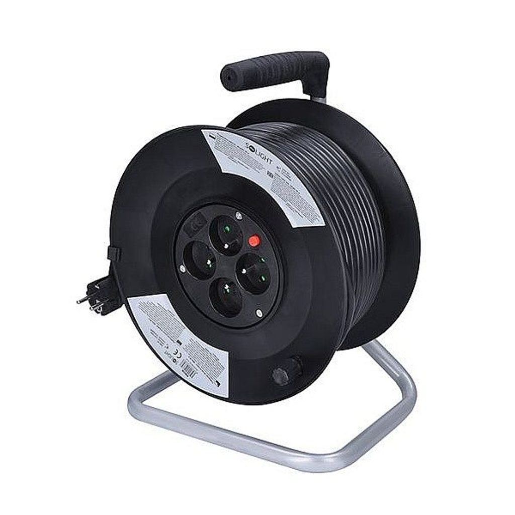 Prodlužovací kabel na bubnu o délce 50 m se 4 zásuvkami a tepelnou pojistkou.
