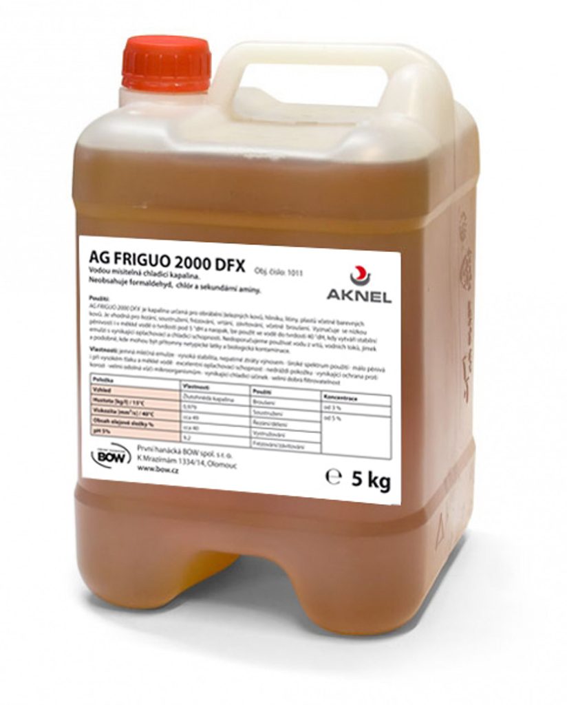 Vodou mísitelná chladicí kapalina. Neobsahuje bór, chlór a sekundární aminy.
