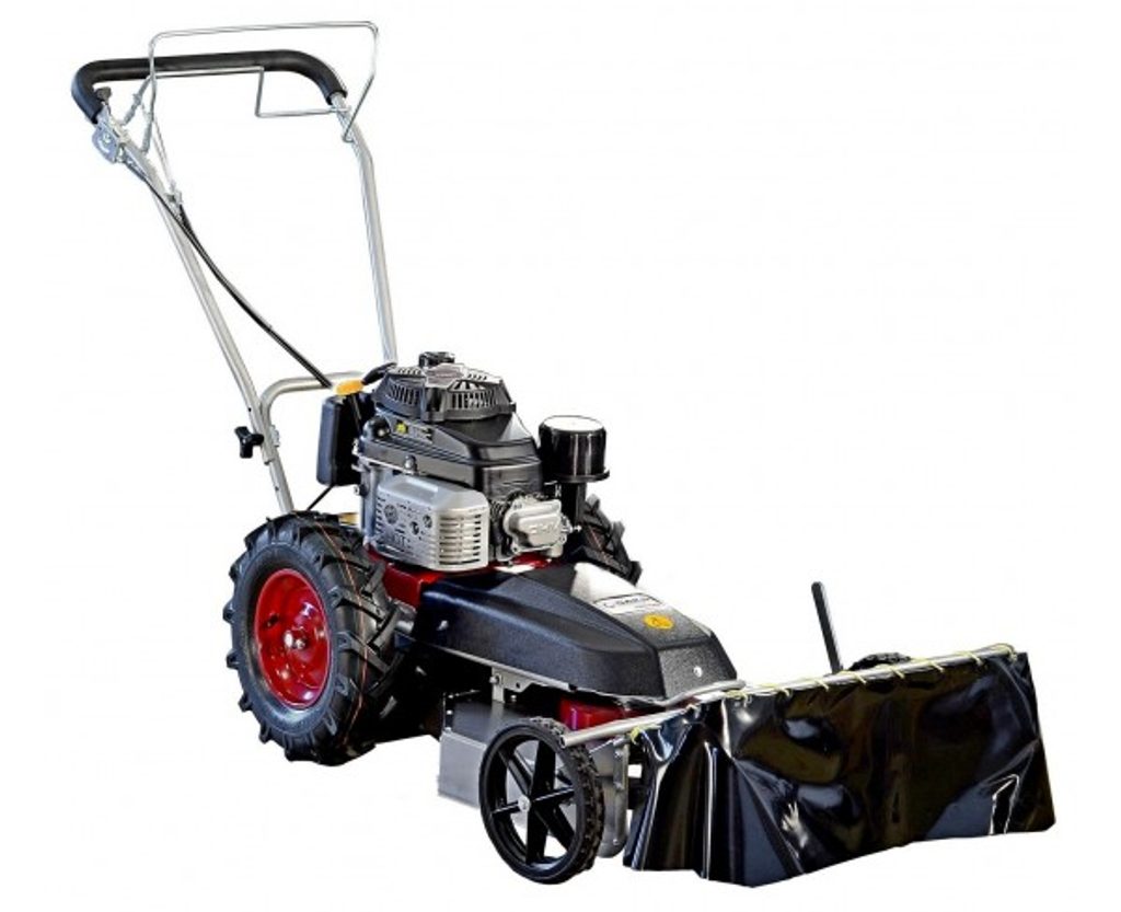 Mulčovač s pojezdem, záběr sečení 55 cm, max. výkon motoru KAWASAKI FJ 180 5,5 HP, dvě rychlosti vpřed.