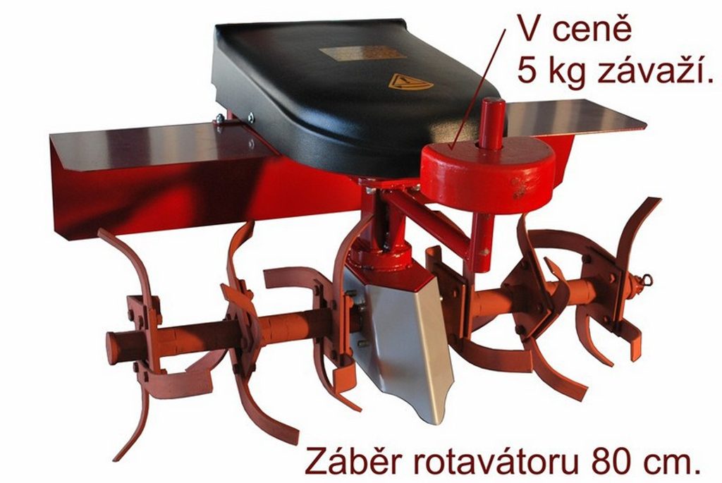 Rotavátor vám dobře poslouží na jaře i na podzim. Na začátku sezony s ním nakypříte záhony k sázení a na podzim zapracujete hnůj, či jiné hnojivo do půdy. Na rozdíl od jednoúčelových strojů je náš profi rotavátor ROT převodován mnohem více do rychla. Účinnost je tedy mnohem vyšší a práce s ním rychlejší. Je používán profesionálními zahradníky ke srovnání terénu při dokončovacích pracích na zahradách. Součástí stroje je 5 kg závaží, radlička a výztuha řidítek pro FD-2. Při zpracování do větších hloubek a u těžších půd doporučujeme přidat další závaží. Rotavátor je sestavěn ze 6 hvězdic o průměru 30 cm a záběru 80 cm, po zúžení na 4 hvězdice je záběr 54 cm. Vlastní zpřevodování adaptéru se děje převodovkou v poměru 1:7,5, klínový řemen slouží k přenosu otáček, nikolv k vlastnímu zpřevodování.