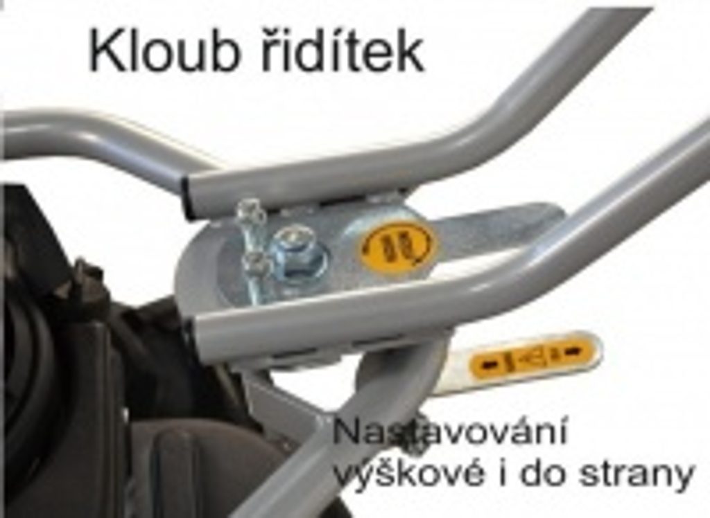 Možnost připojit sedačku a při práci sedět, řada adaptérů pro přestavbu na mulčovač, obraceč a shrabovač, frézu a radlici na sníh, vozík, zametací kartáč, rotavátor a drtič větví.