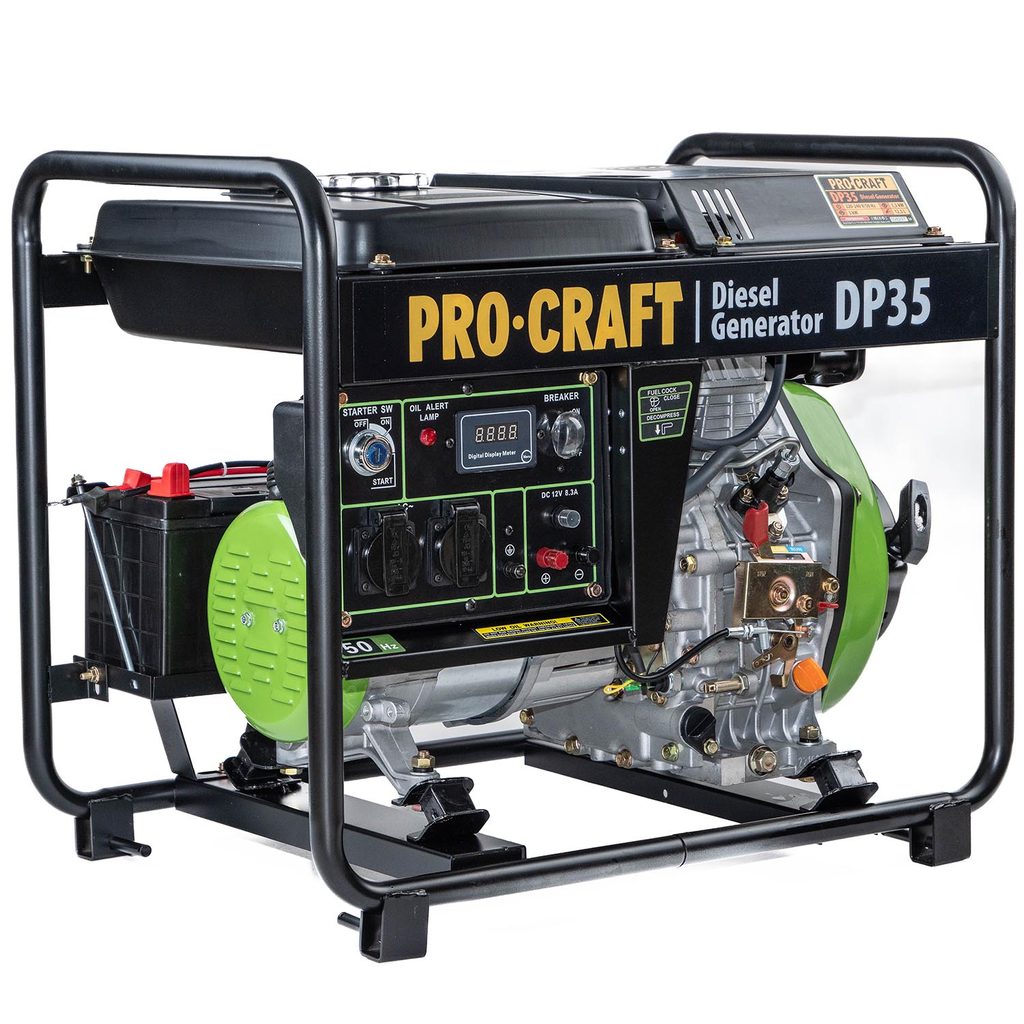 Robustní a spolehlivá dieselová elektrocentrála Procraft DP35 slouží jako nezávislý zdroj elektrického proudu pro stavbu, domácnost i nouzové situace. Díky vysokému výkonu a úspornému provozu zvládne napájet běžné i výkonnější spotřebiče, a to po dlouhou dobu bez přerušení.
