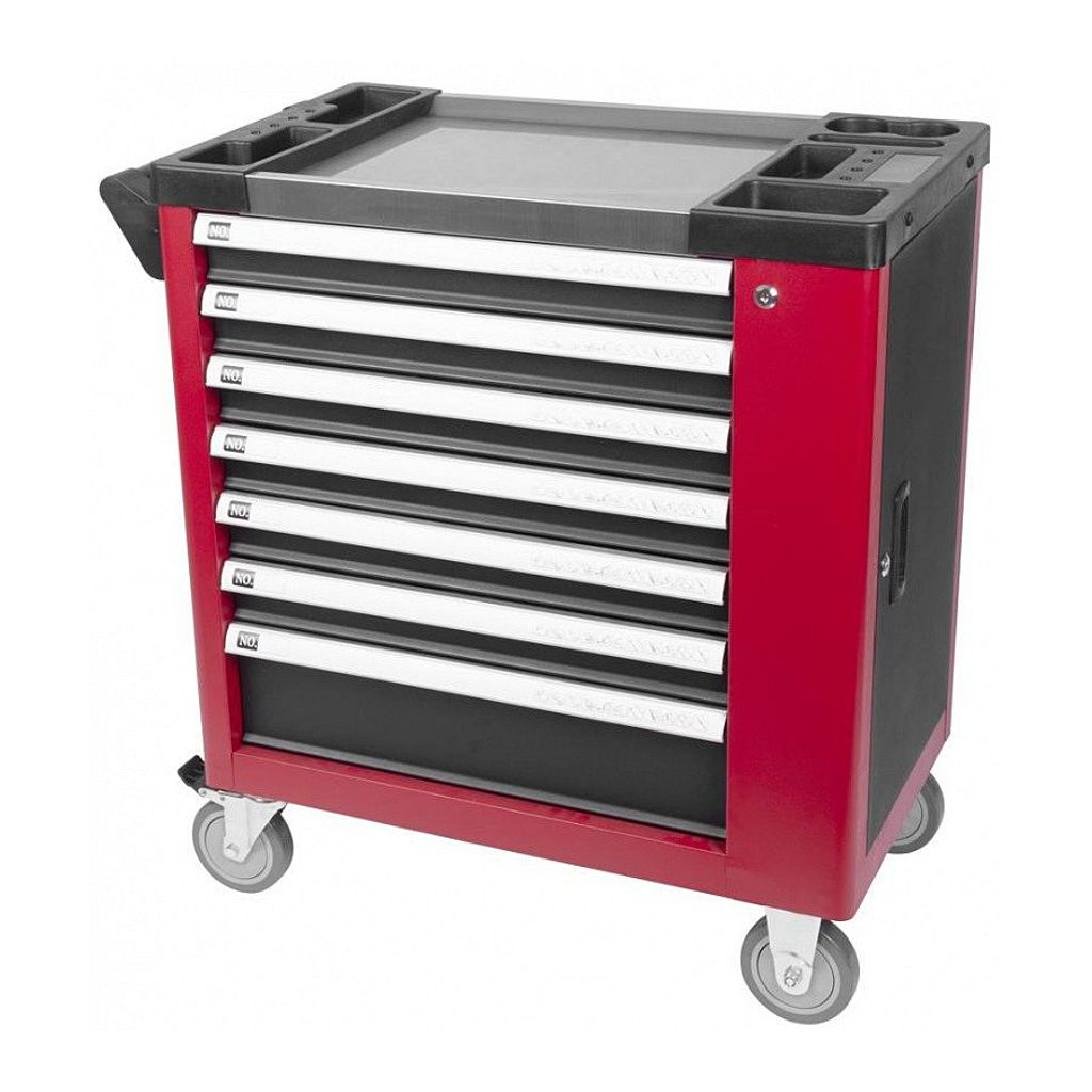 Pojízdný dílenský vozík se sedmi zásuvkami obsahuje 249 kusů nářadí.