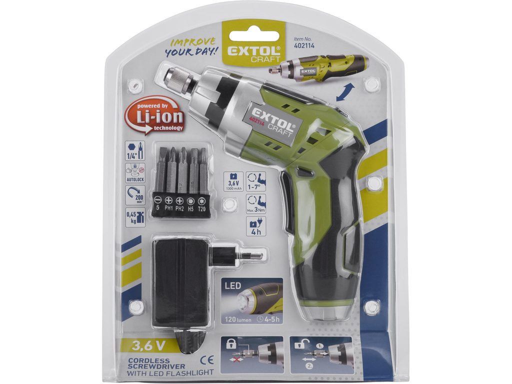Buďte první, kdo ohodnotí "EXTOL CRAFT šroubovák aku 3,6V Li-ion, 1300mAh se svítilnou, 402114"