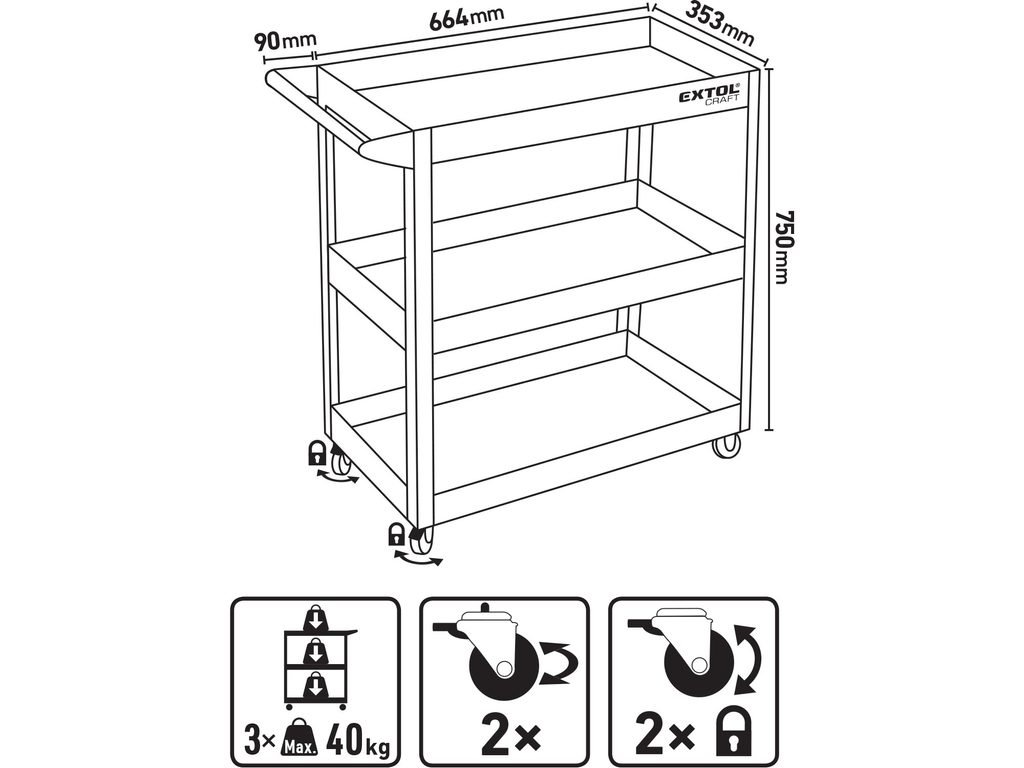 Buďte první, kdo ohodnotí "EXTOL CRAFT vozík policový, 3police, max 120kg, 956051"