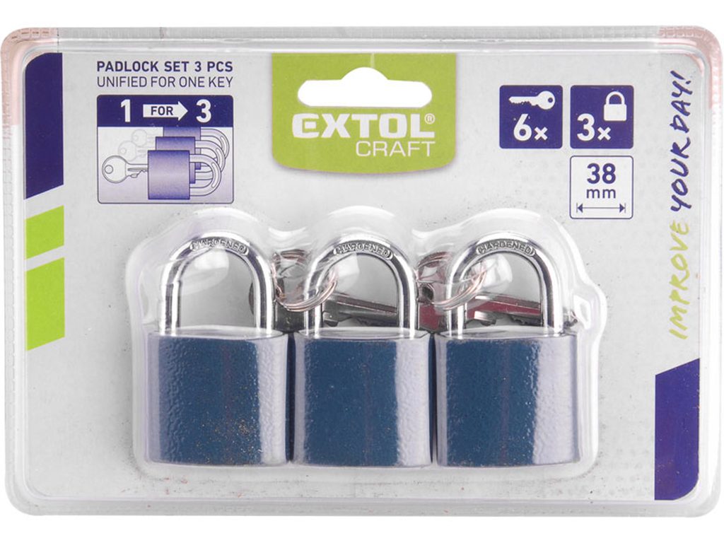 Buďte první, kdo ohodnotí "EXTOL CRAFT zámky visací sjednocené na 1 klíč, sada 3 ks 38mm, 93101"
