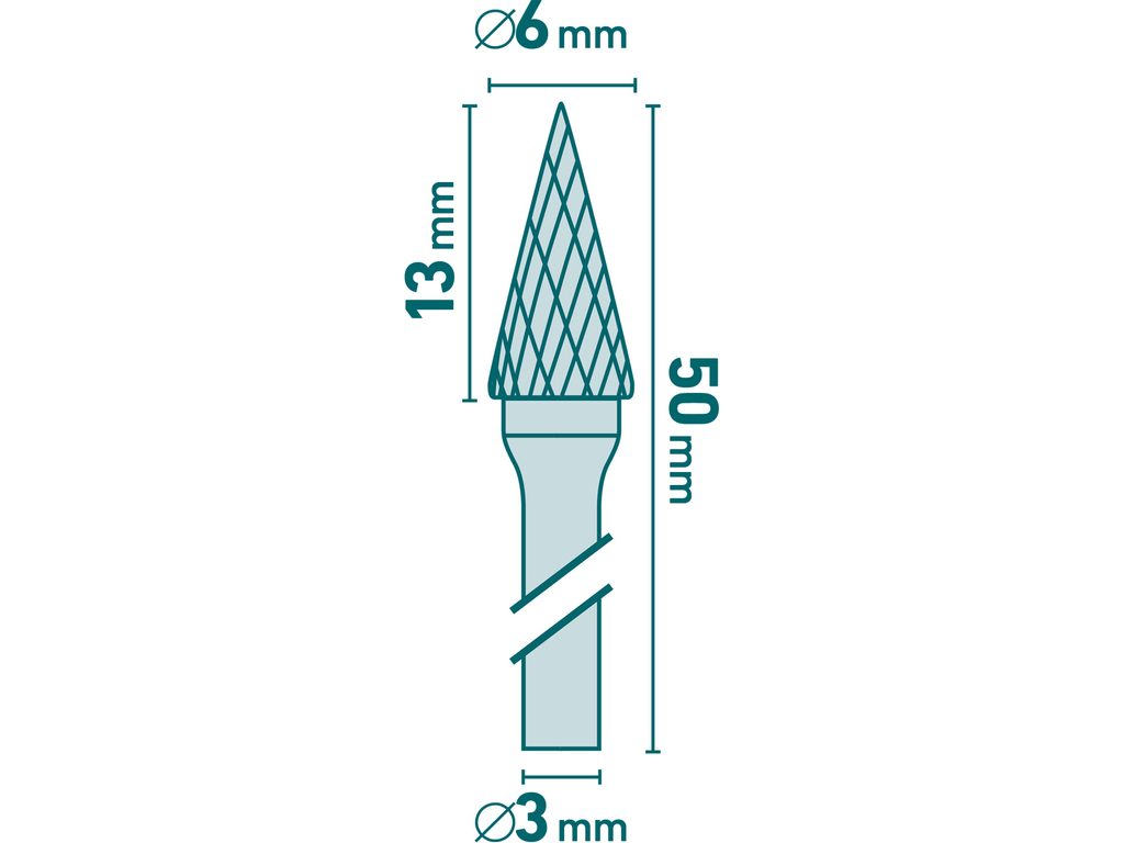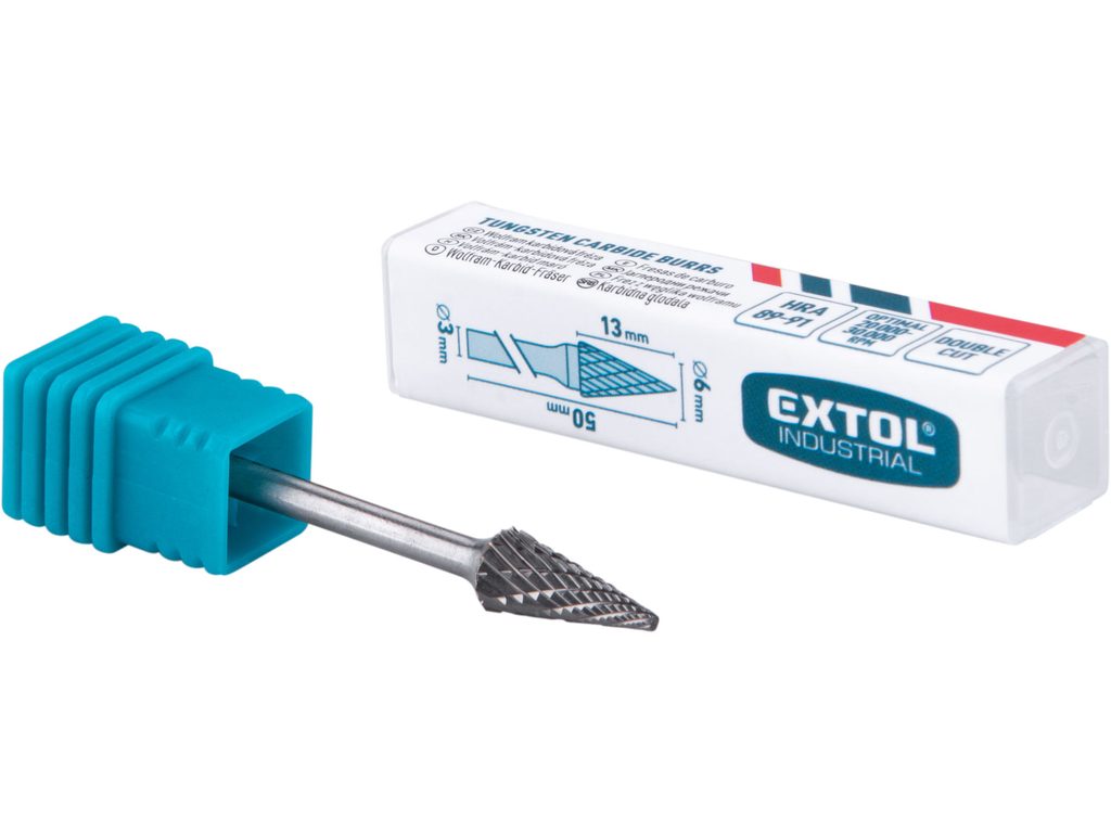 Buďte první, kdo ohodnotí "EXTOL INDUSTRIAL fréza karbidová, konická-jehlan, ⌀6x13mm, ⌀stopky 3mm, sek střední (double-cut), 8703893"