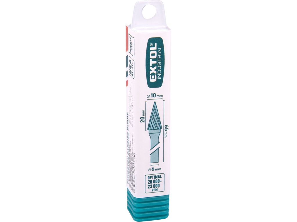 Buďte první, kdo ohodnotí "EXTOL INDUSTRIAL fréza karbidová, konická-jehlan, pr.10x20mm/stopka 6mm,sek střední (double-cut), 8703794"