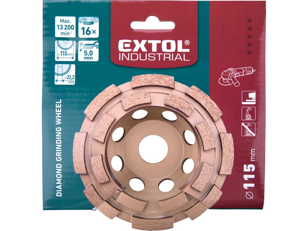 Buďte první, kdo ohodnotí "EXTOL INDUSTRIAL kotouč diamantový brusný dvouřadý, O 115x22,2mm, 8703121"