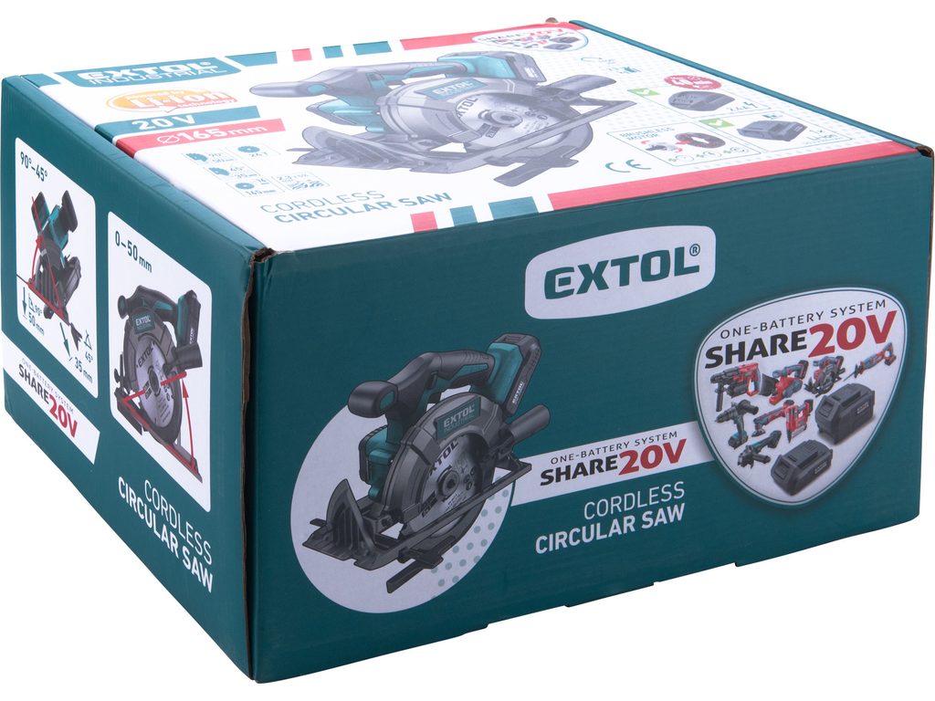Buďte první, kdo ohodnotí "EXTOL INDUSTRIAL pila kotoučová aku SHARE20V, 165mm, BRUSHLESS, 20V Li-ion, 2Ah, 8791822"