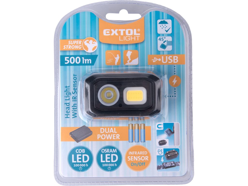 Buďte první, kdo ohodnotí "EXTOL LIGHT čelovka 500lm, Dual Power - Li-ion nebo AAA, USB nabíjení, s IR čidlem, OSRAM LED+COB LED, 43185"