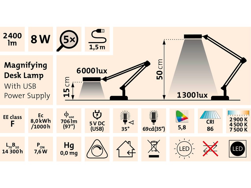 Buďte první, kdo ohodnotí "EXTOL LIGHT lampa stolní s lupou, USB napájení, černá, 2400lm, 3 barvy světla, 5x zvětšení, 43160"