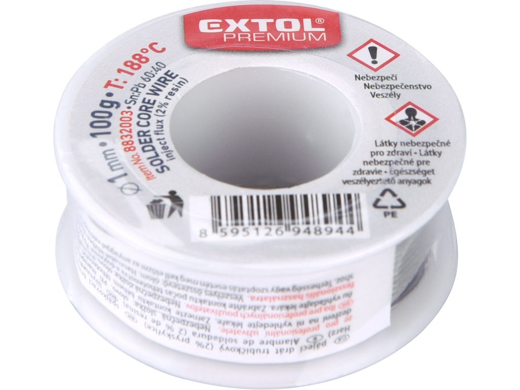 Buďte první, kdo ohodnotí "EXTOL PREMIUM drát pájecí trubičkový Sn60/Pb40, O 1mm, 100g, 8832003"