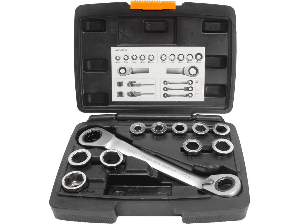 Buďte první, kdo ohodnotí "EXTOL PREMIUM klíč ráčnový tvarovaný a vložky, sada 11ks, 8-19mm, CrV, 8816101"