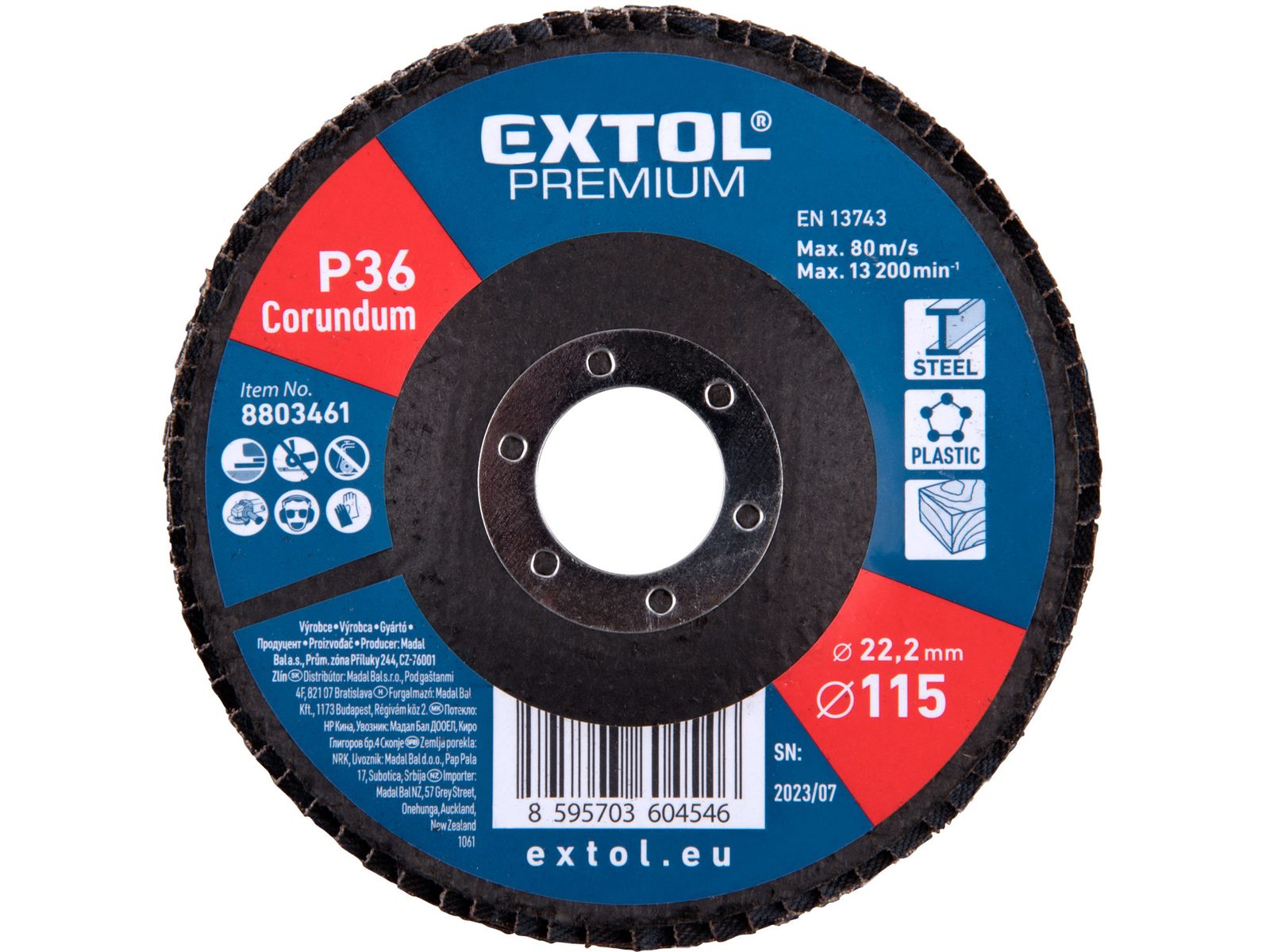 Buďte první, kdo ohodnotí "EXTOL PREMIUM kotouč lamelový šikmý korundový, O115mm, P36, 8803461"
