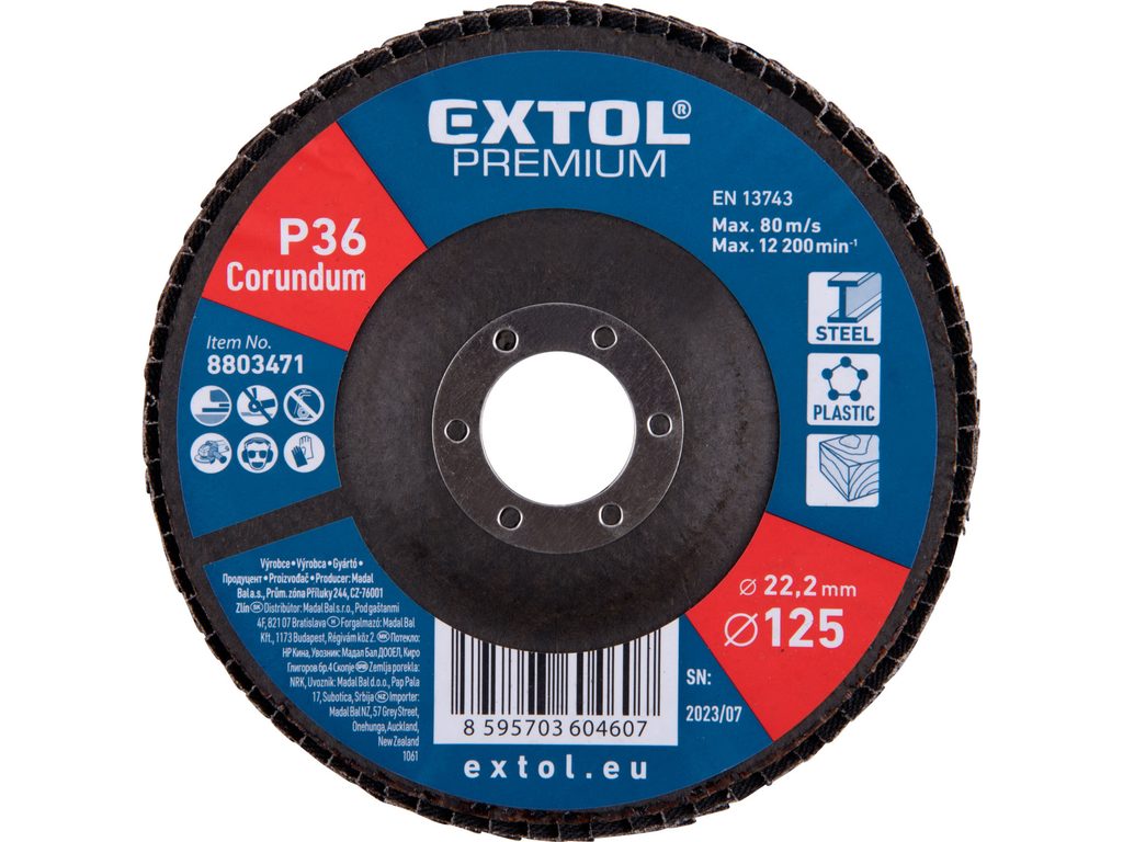 Buďte první, kdo ohodnotí "EXTOL PREMIUM kotouč lamelový šikmý korundový, O125mm, P36, 8803471"