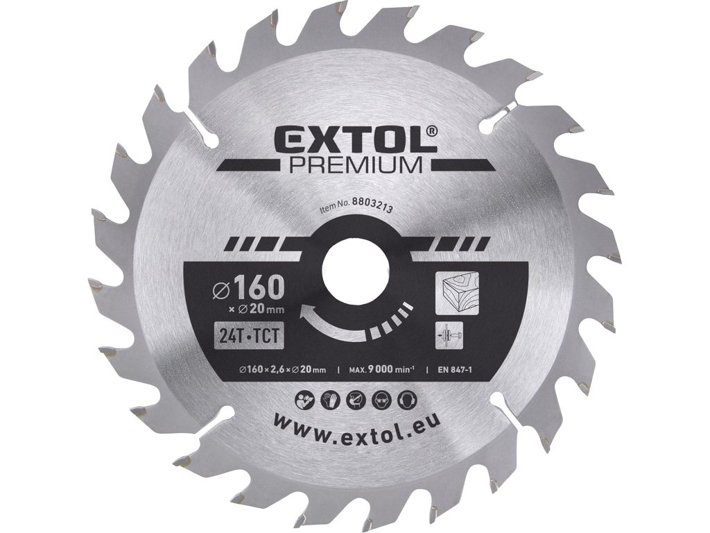 Buďte první, kdo ohodnotí "EXTOL PREMIUM kotouč pilový s SK plátky, O 160x2,6x20mm, 24T, 8803213"