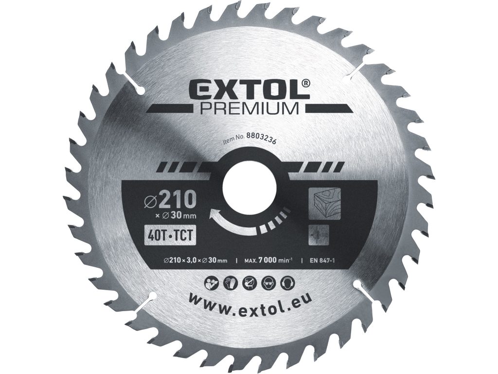 Buďte první, kdo ohodnotí "EXTOL PREMIUM kotouč pilový s SK plátky, O 210x3,0x30mm, 40T, 8803236"