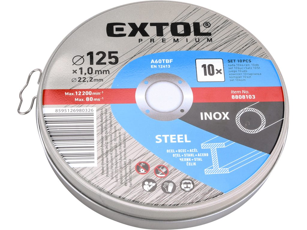 Buďte první, kdo ohodnotí "EXTOL PREMIUM kotouč řezný na ocel/nerez, 10ks, O 125x1,0x22,2mm, 8808103"
