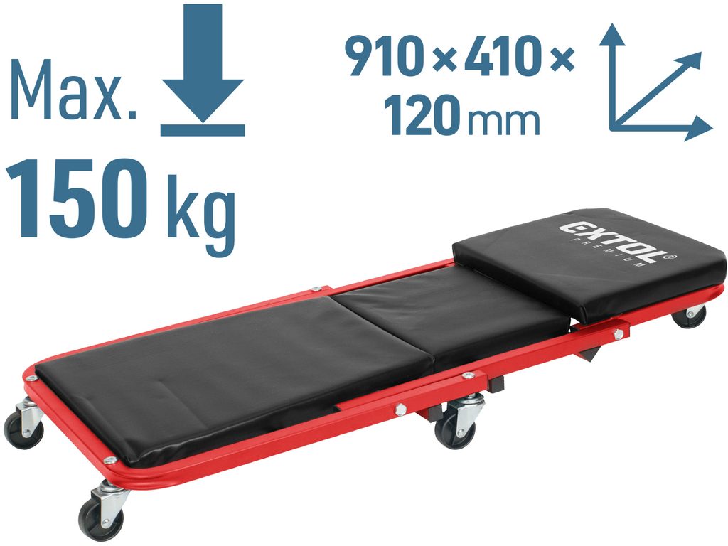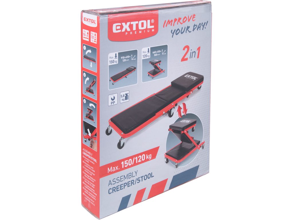 Buďte první, kdo ohodnotí "EXTOL PREMIUM lehátko/sedák 2v1, montážní pojízdné, rozloženo 91x41x12cm, až 150/120kg, 8863302"