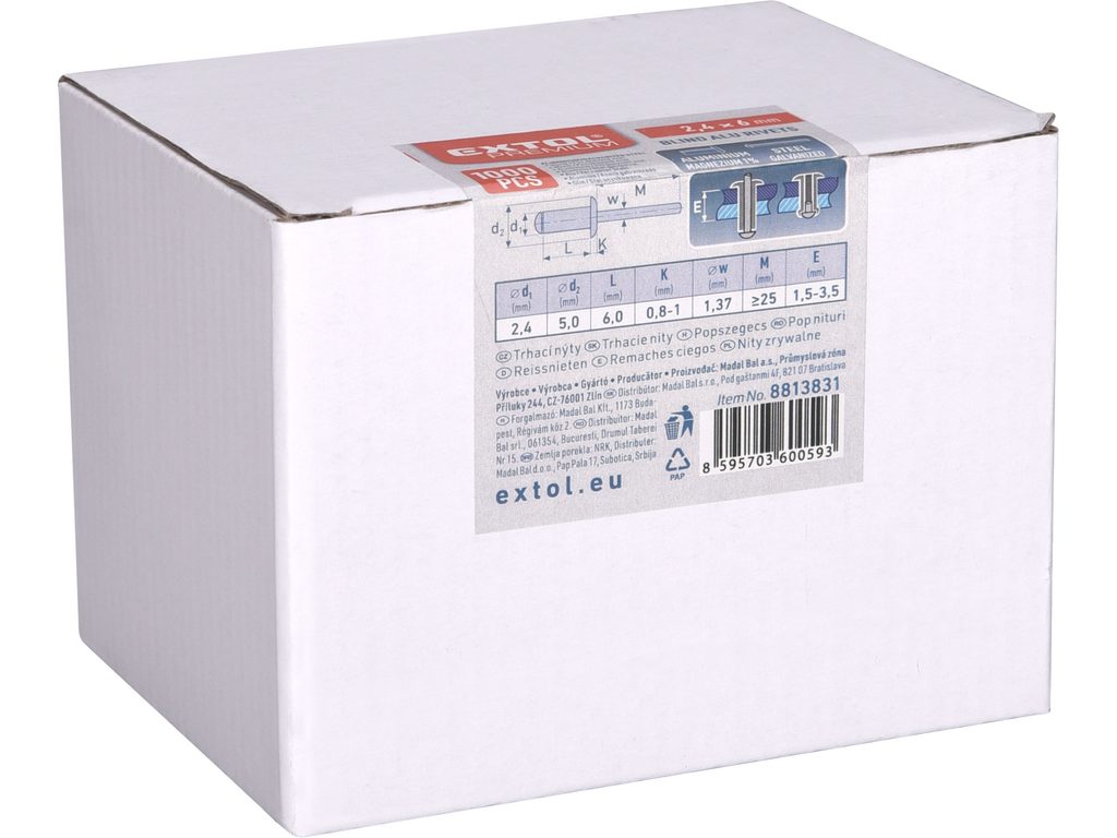 Buďte první, kdo ohodnotí "EXTOL PREMIUM nýty trhací hliníkové sada 1000ks, O 2,4x6mm plochá hlava, 8813831"