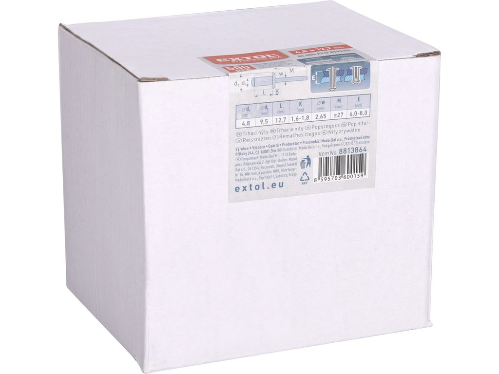 Buďte první, kdo ohodnotí "EXTOL PREMIUM nýty trhací hliníkové sada 500ks, O 4,8x12,7mm plochá hlava, 8813864"