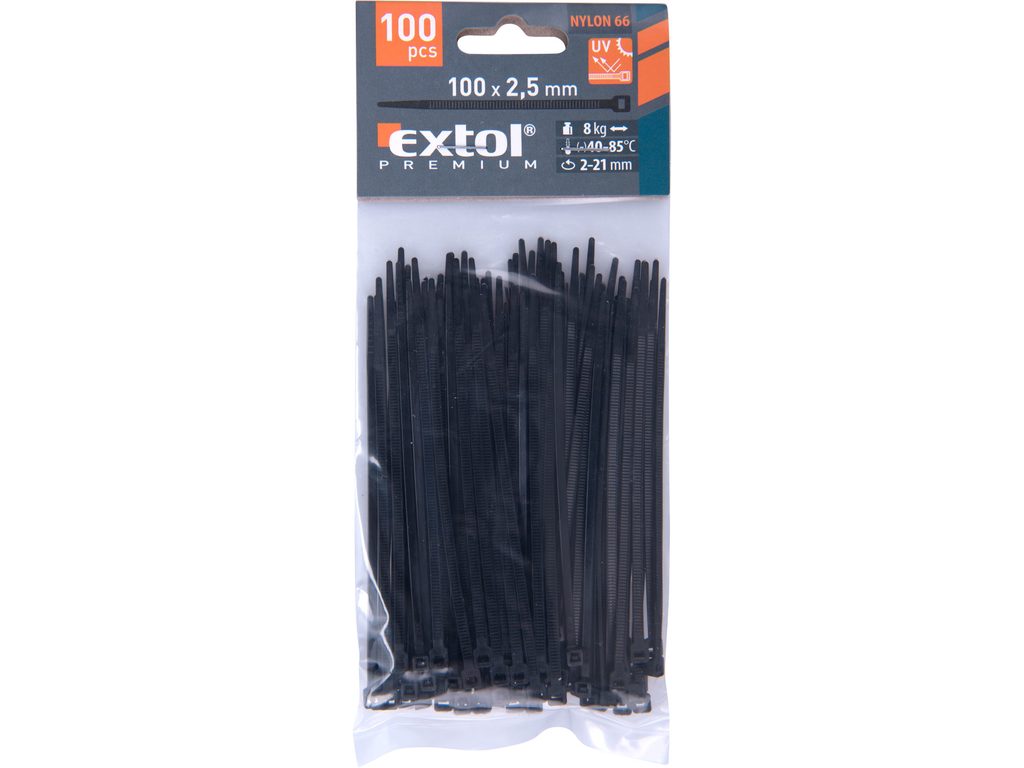 Buďte první, kdo ohodnotí "EXTOL PREMIUM pásky stahovací na kabely černé, 100x2,5mm, 100ks, nylon PA66, 8856152"