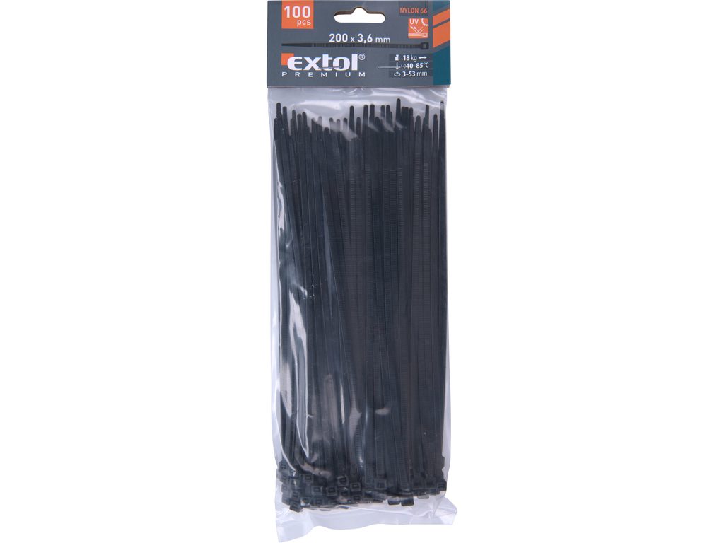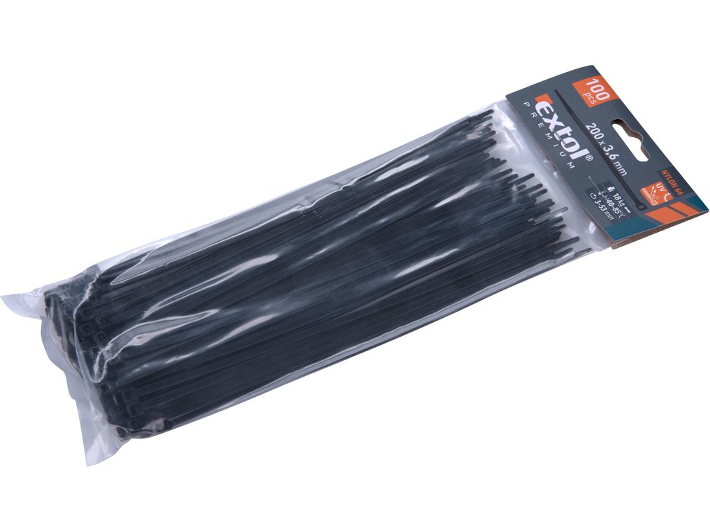Buďte první, kdo ohodnotí "EXTOL PREMIUM pásky stahovací na kabely černé, 200x3,6mm, 100ks, nylon PA66, 8856156"