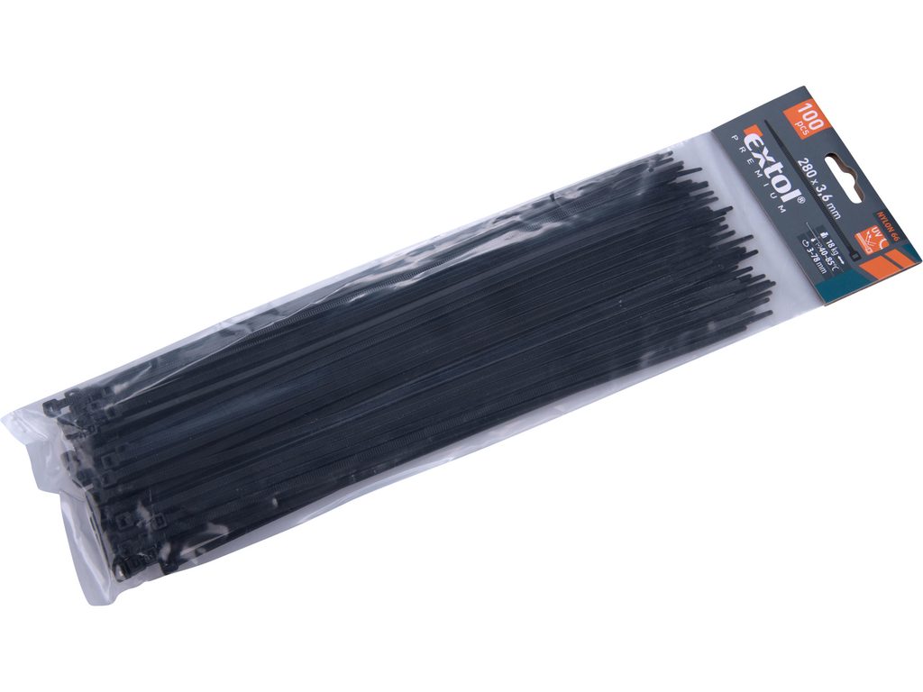 Buďte první, kdo ohodnotí "EXTOL PREMIUM pásky stahovací na kabely černé, 280x3,6mm, 100ks, nylon PA66, 8856158"