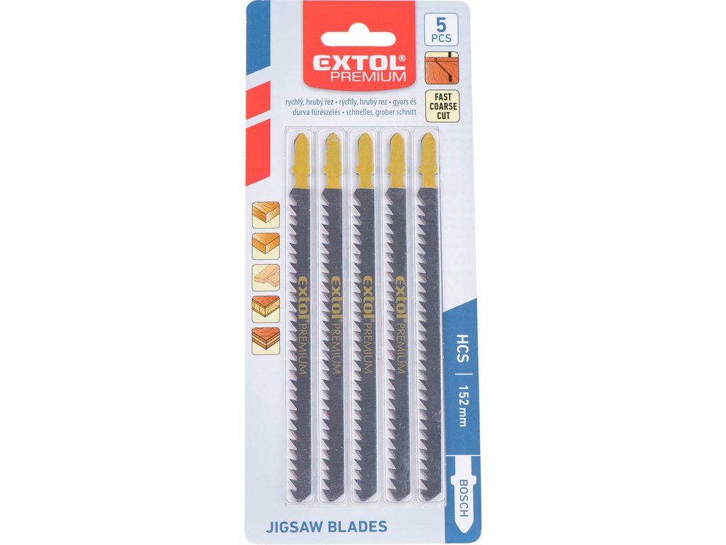 Buďte první, kdo ohodnotí "EXTOL PREMIUM plátky do přímočaré pily 5ks, 126x4,0mm, HCS, 8805012"