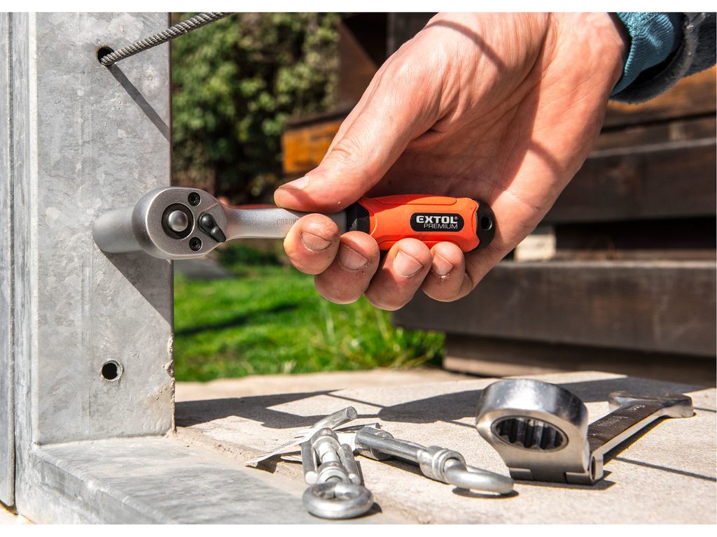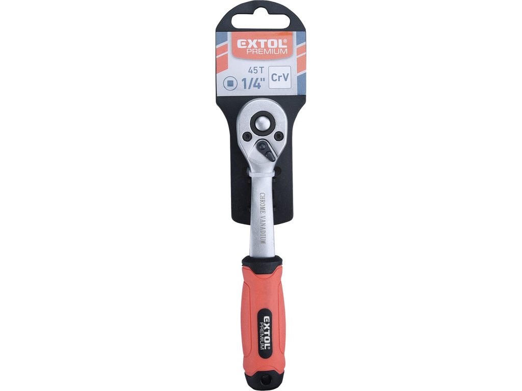 Buďte první, kdo ohodnotí "EXTOL PREMIUM ráčna tvarovaná, 45 zubů, 1/4", L 153mm, Crv, 8816454"