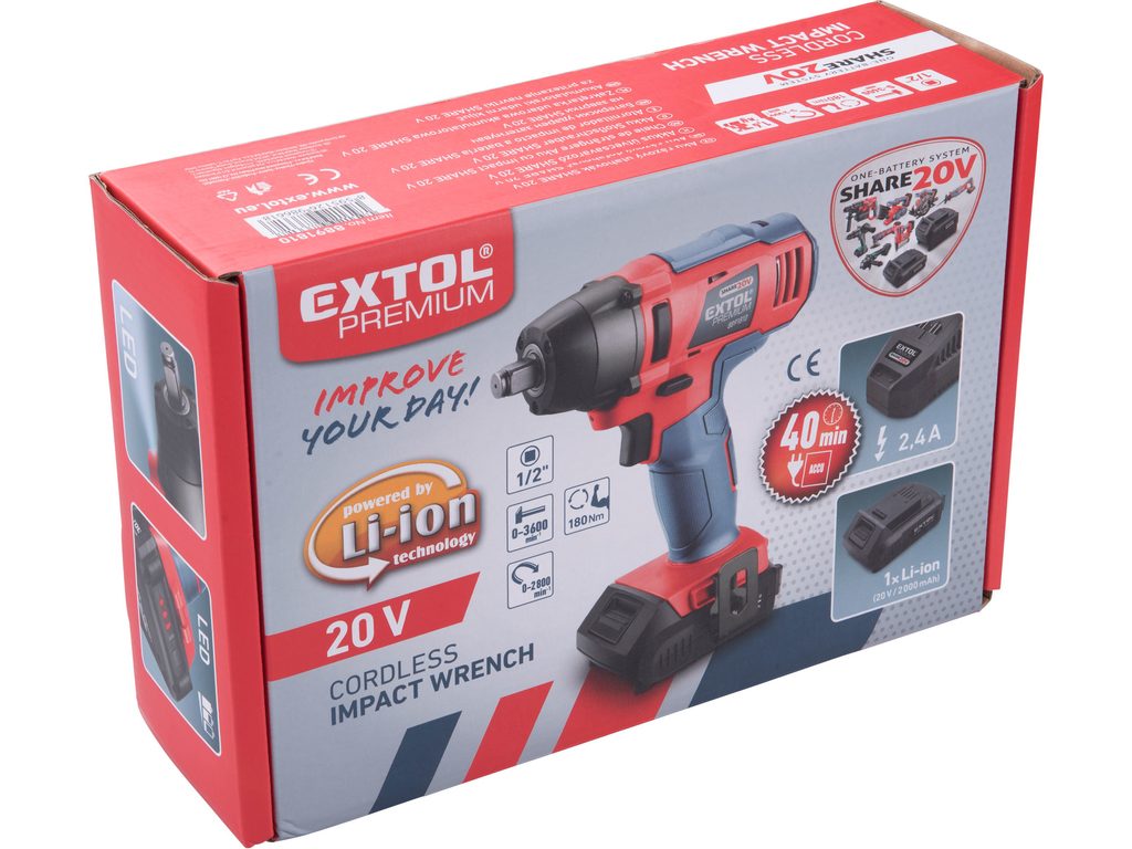 Buďte první, kdo ohodnotí "EXTOL PREMIUM utahovák rázový 1/2" aku SHARE20V, 180Nm, 20V Li-ion, 2Ah, 8891810"