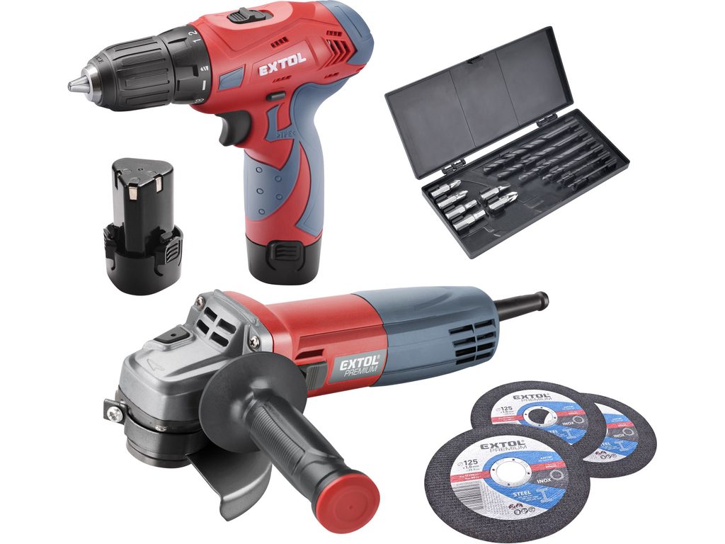 Buďte první, kdo ohodnotí "EXTOL PREMIUM vrtací šroubovák aku, 12V Li-ion (2x) a bruska úhlová 125mm v plastovém boxu, 8898311"