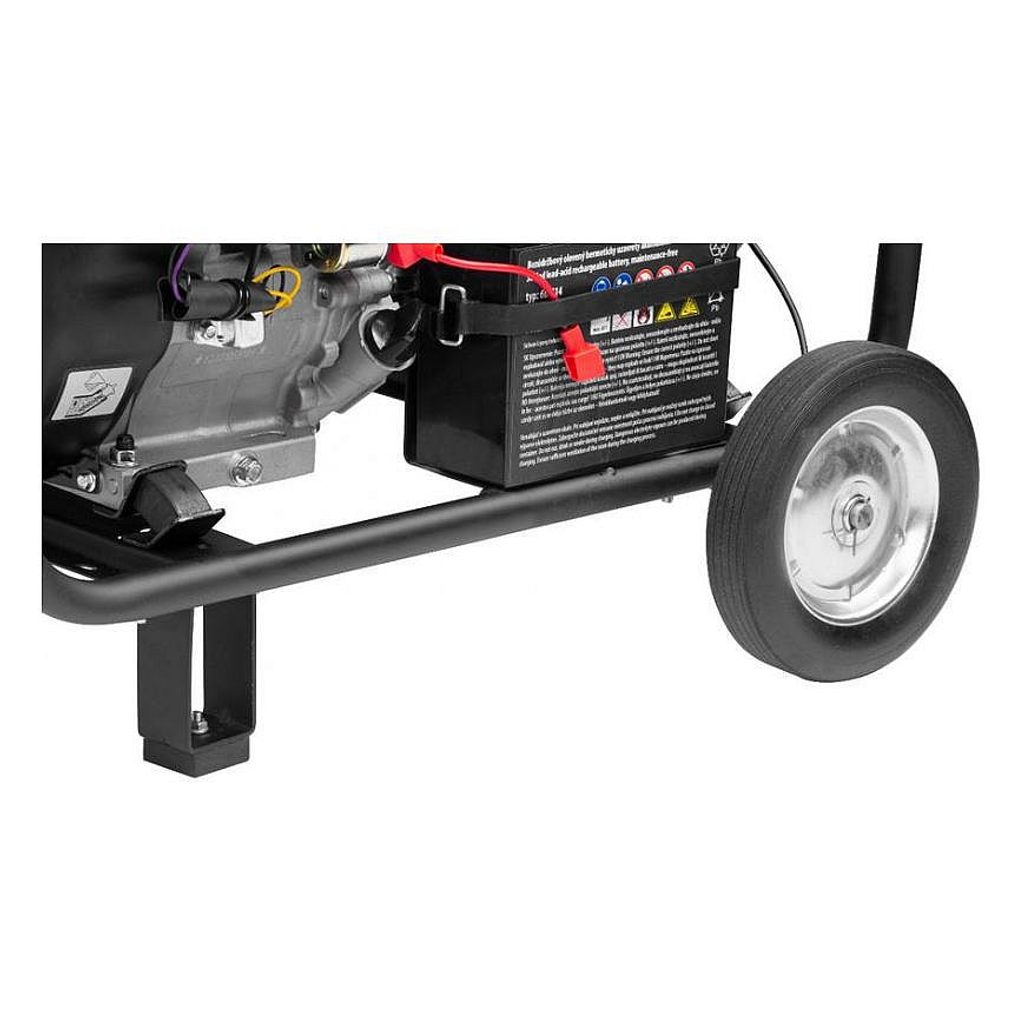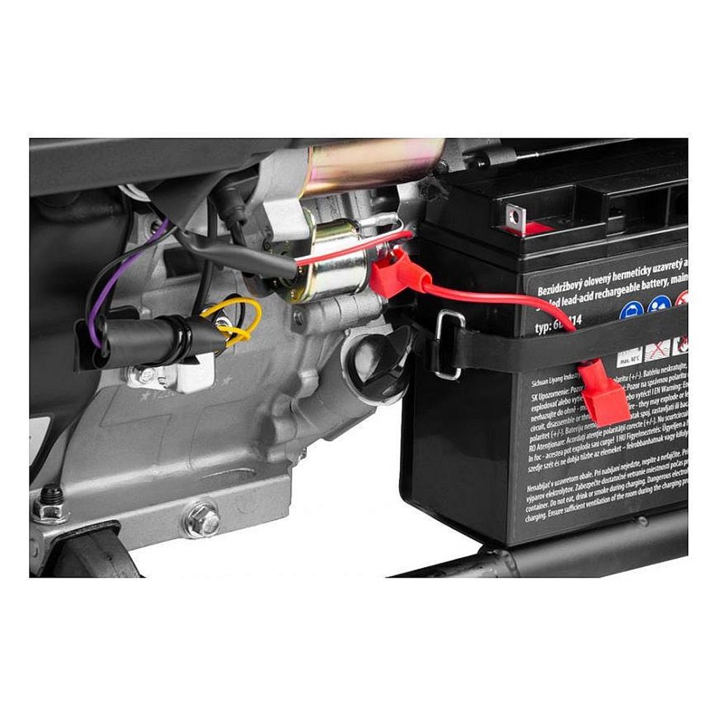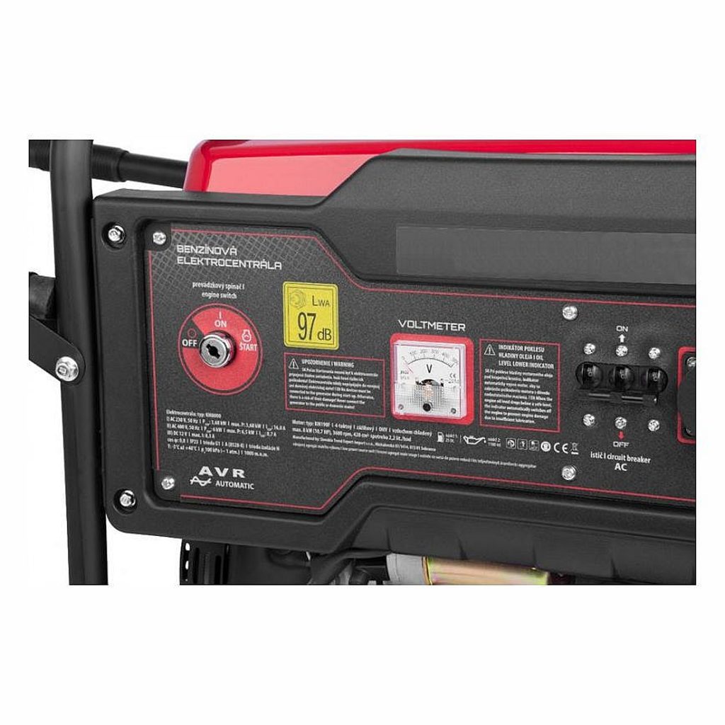 Motor s výkonem 8 kW zabezpečuje trvalý výkon elektrocentrály až do 6000 W. Generátor je vybavený voltmetrem a výstupem 12 V na nabíjení baterií.