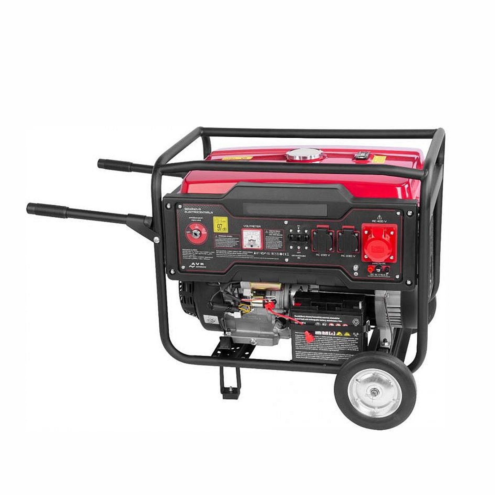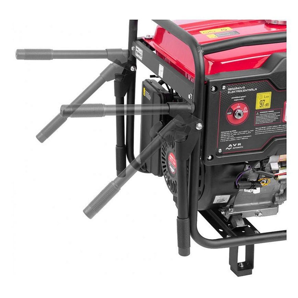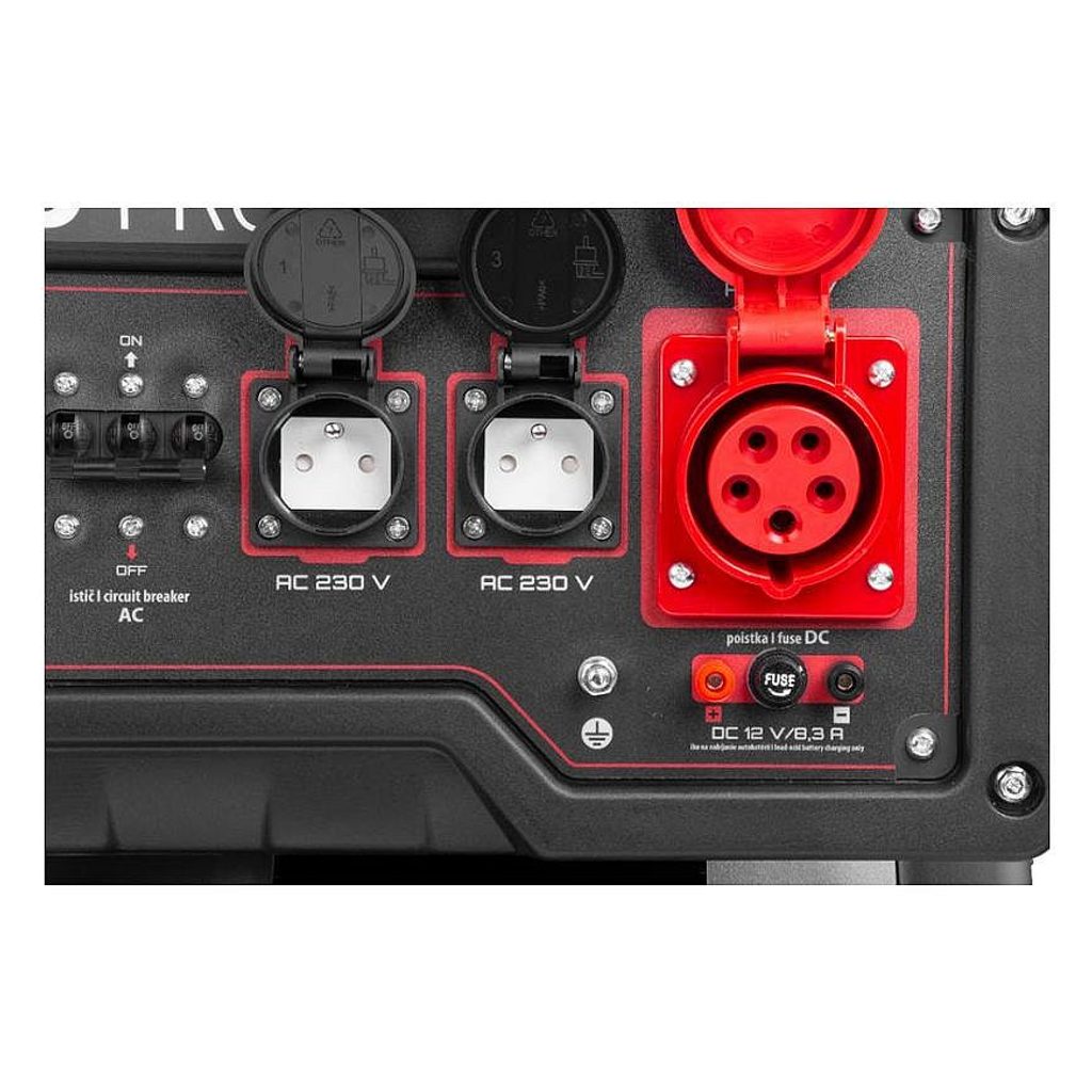Motor s výkonem 8 kW zabezpečuje trvalý výkon elektrocentrály až do 6000 W. Generátor je vybavený voltmetrem a výstupem 12 V na nabíjení baterií.